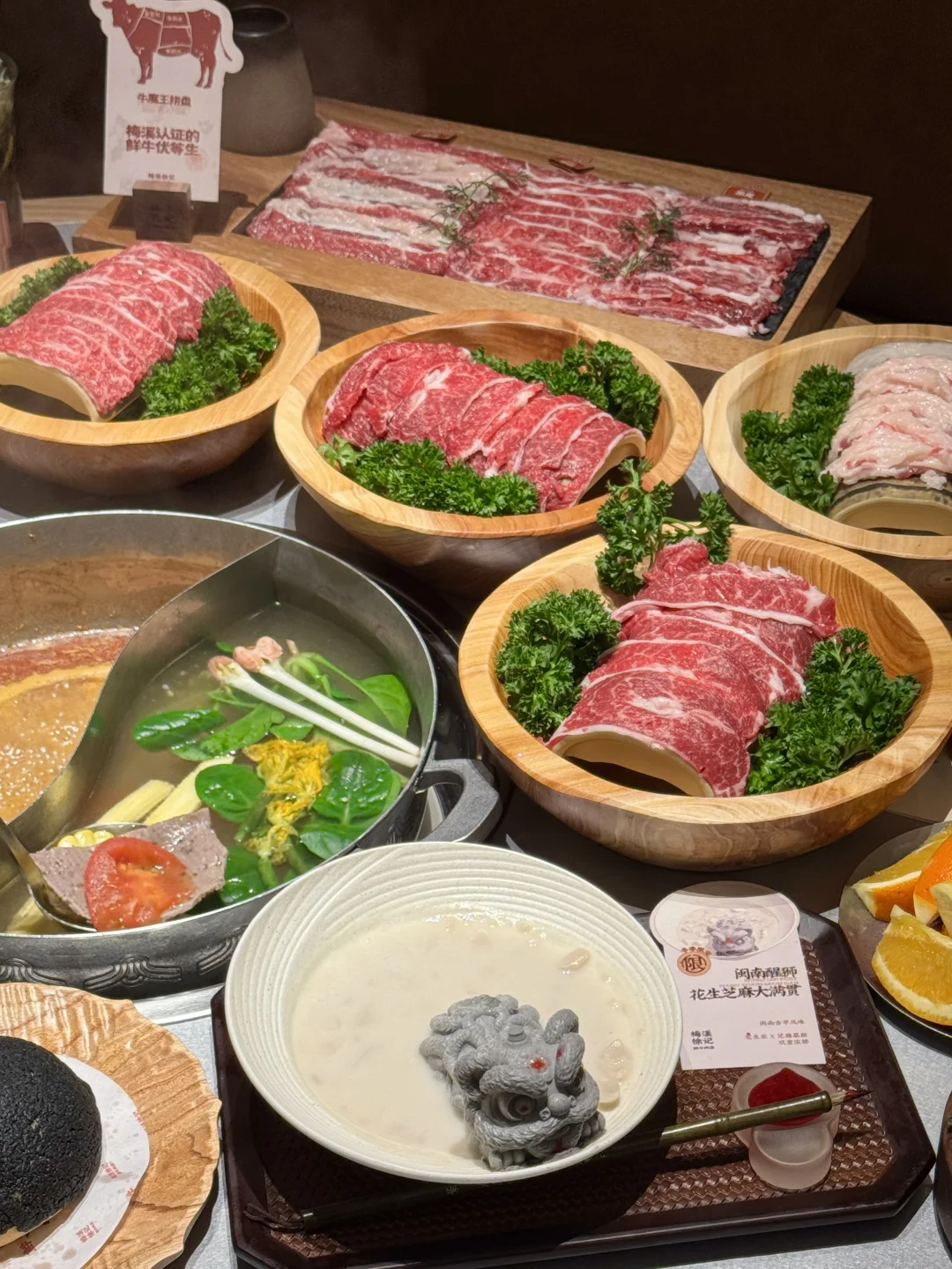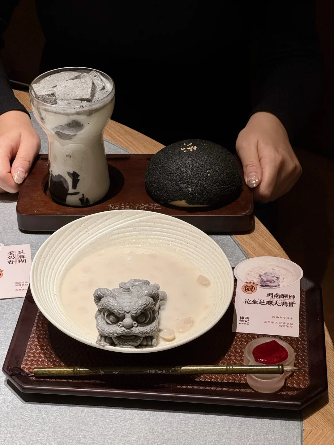 🥜闽南醒狮花生芝麻大满贯、🍍黑金牛牛菠萝包、🥛芝麻糊蛋奶香!新出的黑芝麻系列出到我心坎里😭 花生芝麻大满贯超可爱的喜狮造型,还有点睛的仪式仪式感满满~ 我们点了新出的沙茶真香鸳鸯锅🍲桌边现炒的沙茶真香锅真的巨香🤤煮上明档现切的安格斯牛肉🐂雪花、奶香十足的胸口油..裹上沙茶酱+金蒜谁懂啊!!一个人吃好几盘😋 小伙伴还点了米饭🍚做了沙茶牛肉饭,一吃一个不吱声! 杭州 杭州旅游 杭州美食 潮汕牛肉火锅 杭州火锅 牛肉火锅 周末去哪儿