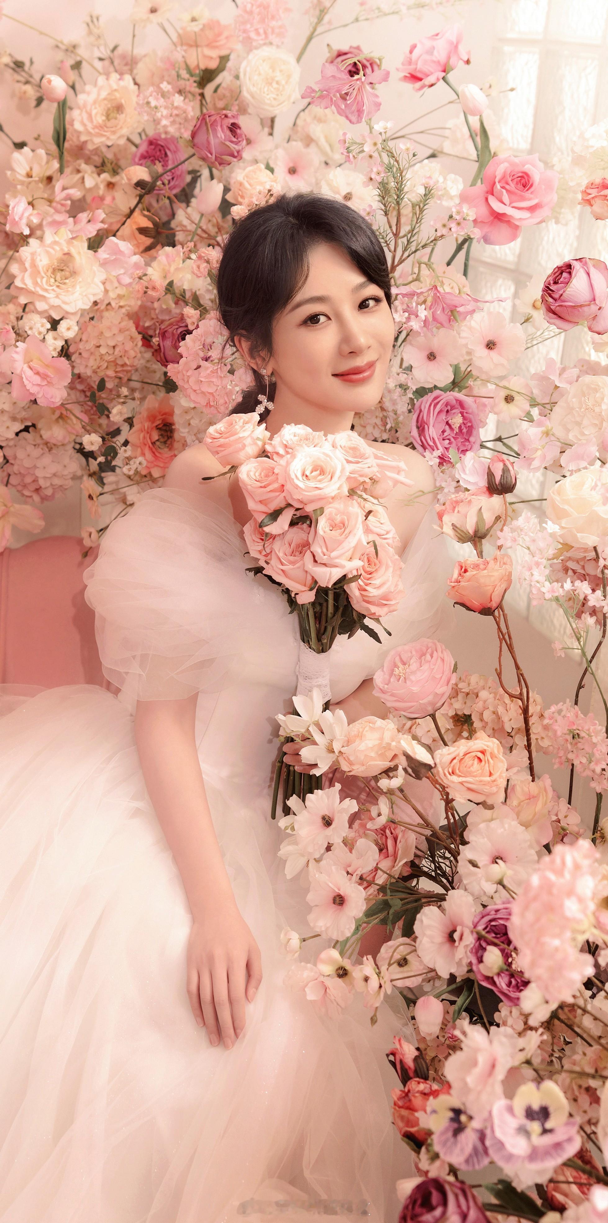 杨紫婚纱大片玫瑰粉氛围浪漫唯美