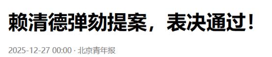 时候已到!2025年12月26日,九票之差,弹劾提案通过,赖清德被要求辞职!傅崐