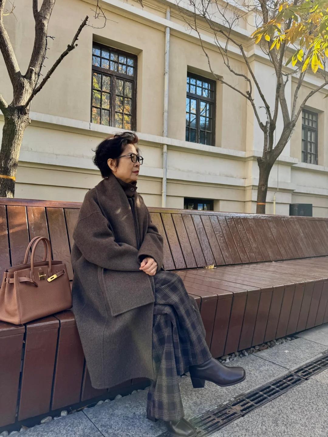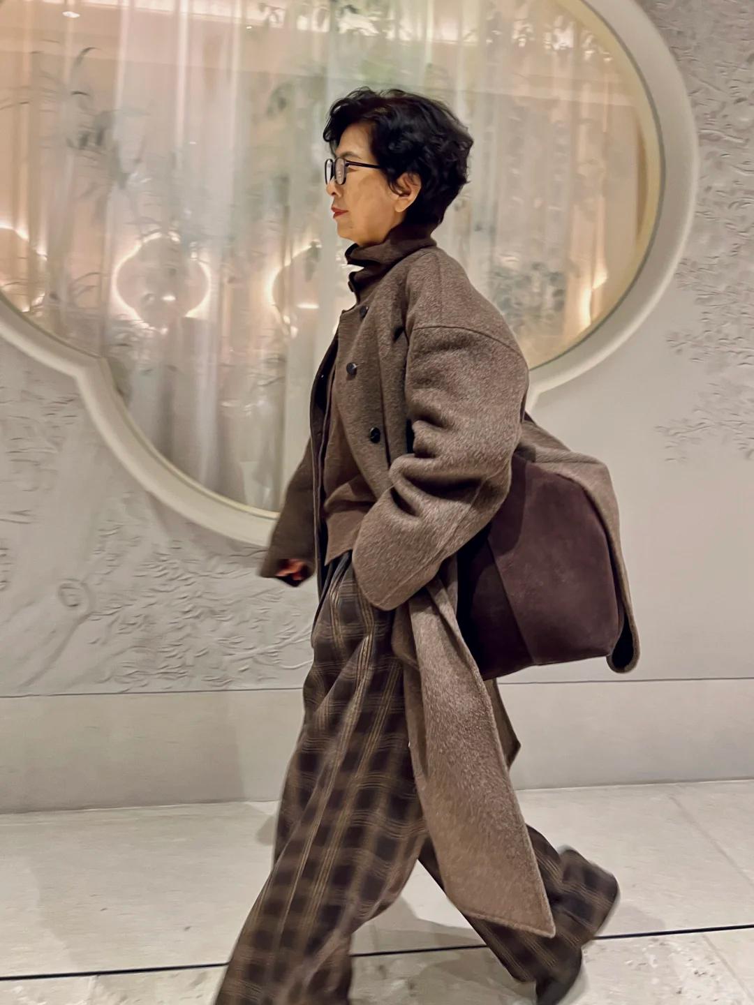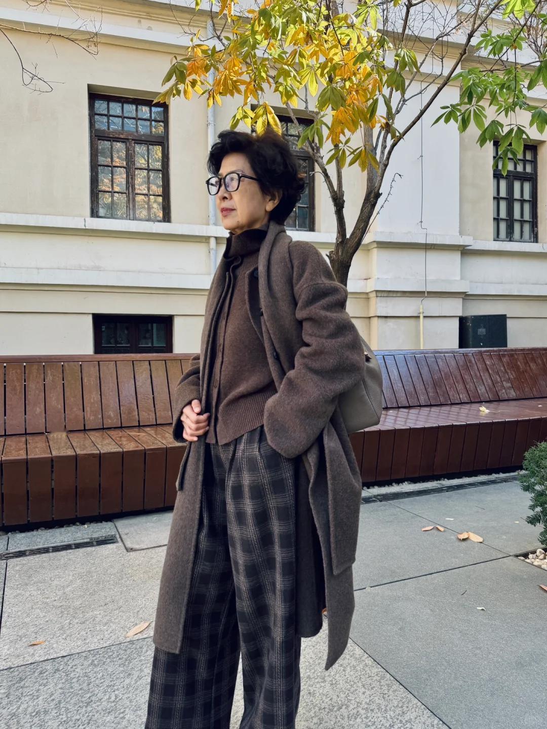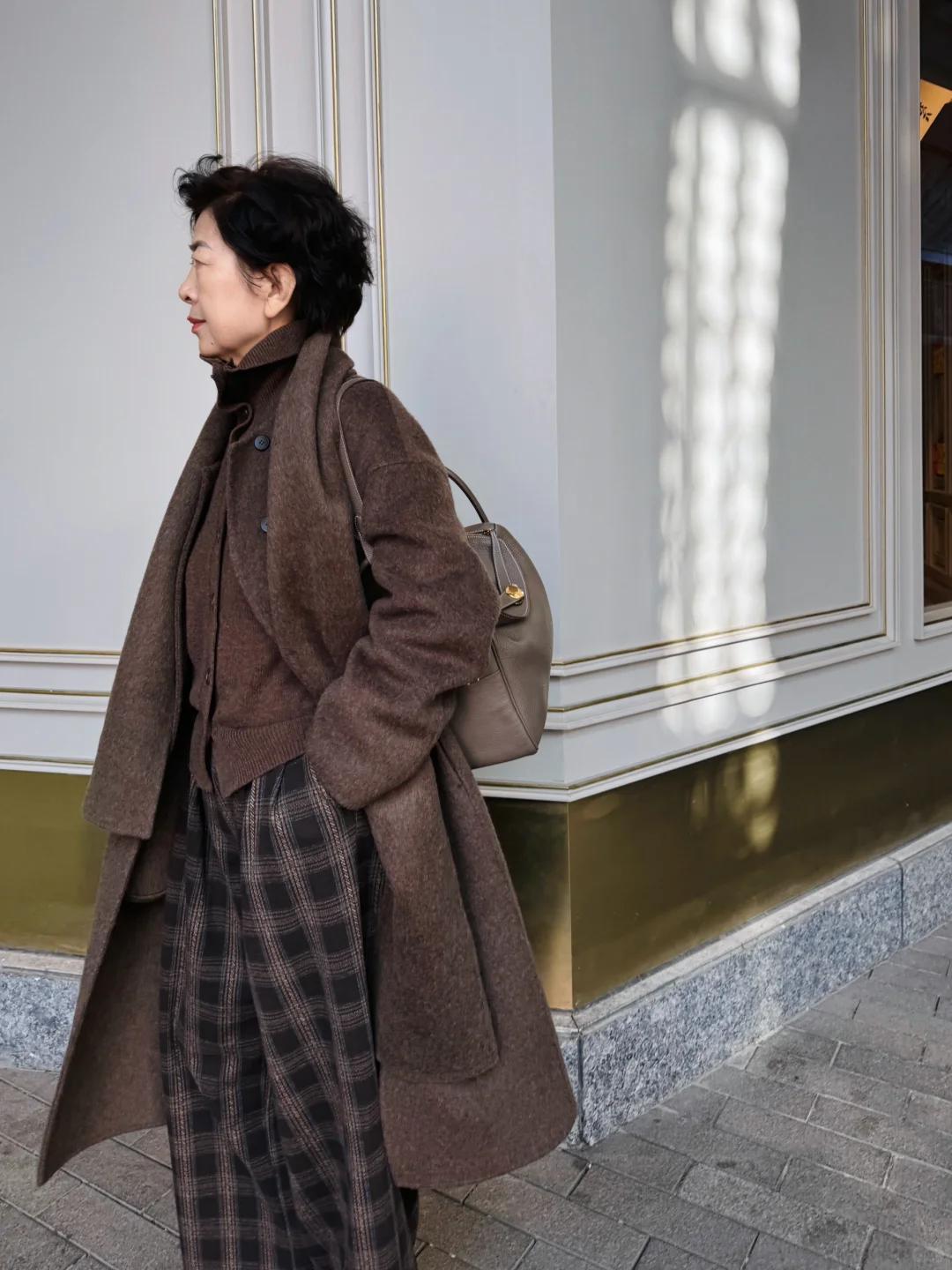 67岁,邂逅美拉德色系的冬日浪漫 今日分享67岁博主西西姥姥的私服穿搭,女人年过六十也要爱穿搭,六十岁的时尚是岁月沉淀后的优雅诗篇,而美拉德色系,恰似这诗篇里最动人的韵脚。深咖色长款大衣,是冬日的温暖铠甲,沉稳又大气。 叠穿同色系针织开衫,层次感悄然浮现,温柔且惬意。再配上同色系格纹阔腿裤,复古又摩登,每一步都走出从容与自信。 这一身穿搭,简约而不简单,高级质感尽显。无需过多修饰,便能在冬日街头自成一道风景,诠释着岁月赋予的独特魅力,即使是年过60岁,依旧能绽放属于自己的光彩。 咖啡色正肩呢子大衣女2025秋冬新款高级感中长款加厚宽松毛呢外套