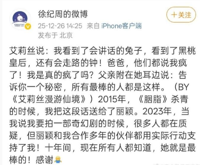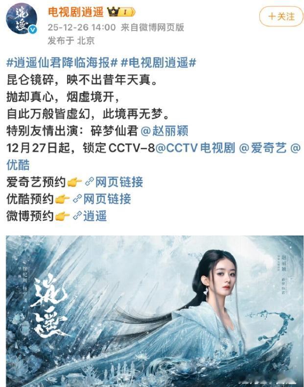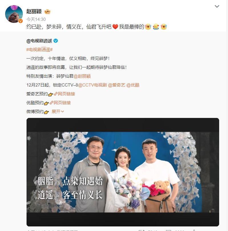 赵丽颖《逍遥》角色官宣! 特别友情出演单独官宣,咖位确实大,徐纪周说这次找赵丽颖出演是源自于两个人的约定,赵丽颖人是真好,《逍遥》两次延期开机,人家也两次调整自己的时间来帮忙,给第一次拍古装的徐纪周提供了很多经验,她俩合作时,一个是圈里一抓一大把的小导演,一个是刚火起来的流量明星,如今一个是自编自导了《狂飙》的导演,一个是金鹰飞天双料视后,怎么不算是顶峰相见呢,赵丽颖还挺喜欢和人约定的,成毅也说和她有个约定。