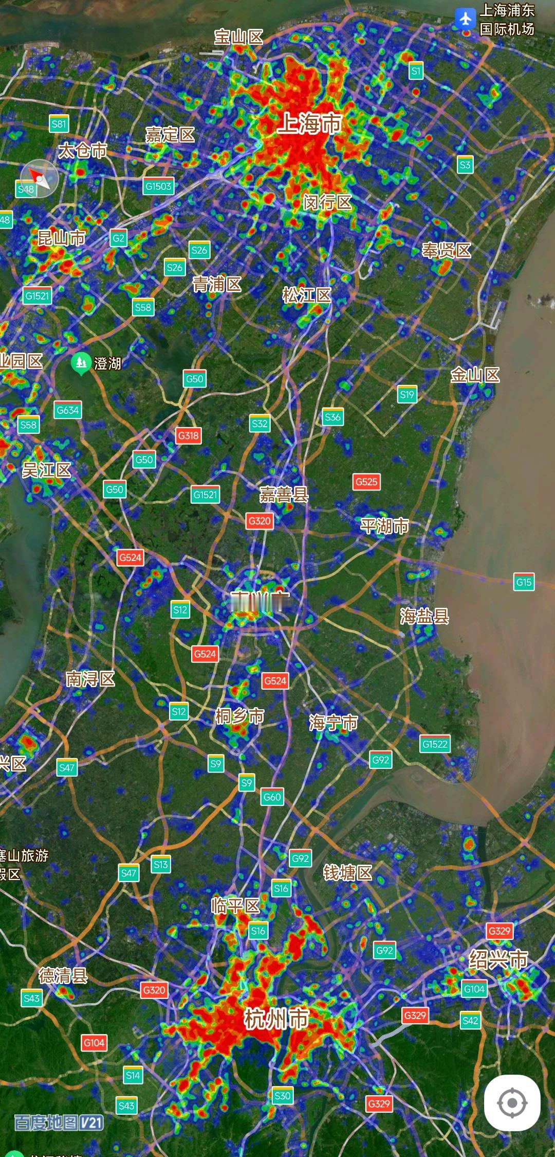 杭州市区外扩速度确实很快。从城市热力图看杭州市区面积大约有上海50%的规模,杭州市区繁华程度能达到上海80%的水准,仔细观察红色区域与蓝色区域面积更是让人深有感触。 更主要的是杭州到德清正在修建城际铁路,建成通车后我相信杭州对外地的吸引力会越来越强,相信几年之后杭州市区繁华程度会更加给力,让我们拭目以待。