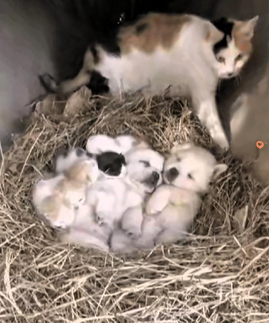这只流浪猫妈妈,把“母爱”两个字写得太戳心了! 真的被这只流浪猫的举动暖到了! 自己刚在地下洞生下一窝小猫,叼着干草搭窝都忙得脚不沾地,出门觅食撞见两只嗷嗷待哺的小奶狗,竟然二话不说把它们叼回了家,让小狗和小猫挤在一起取暖。 都说“自顾不暇”的时候最容易冷漠,可这只猫妈妈偏偏用行动打破了这个说法。 它自己连顿饱饭都吃不上,却愿意多扛两份沉甸甸的责任,这份跨越物种的善意,比任何刻意的煽情都让人动容。 母爱从来不分物种,也从来不计较回报,哪怕卑微到流浪街头,也藏不住骨子里的温柔。 希望能有好心人看到这份温暖,给它们一个遮风挡雨的家。 你身边有没有遇到过这种暖心的小动物故事?