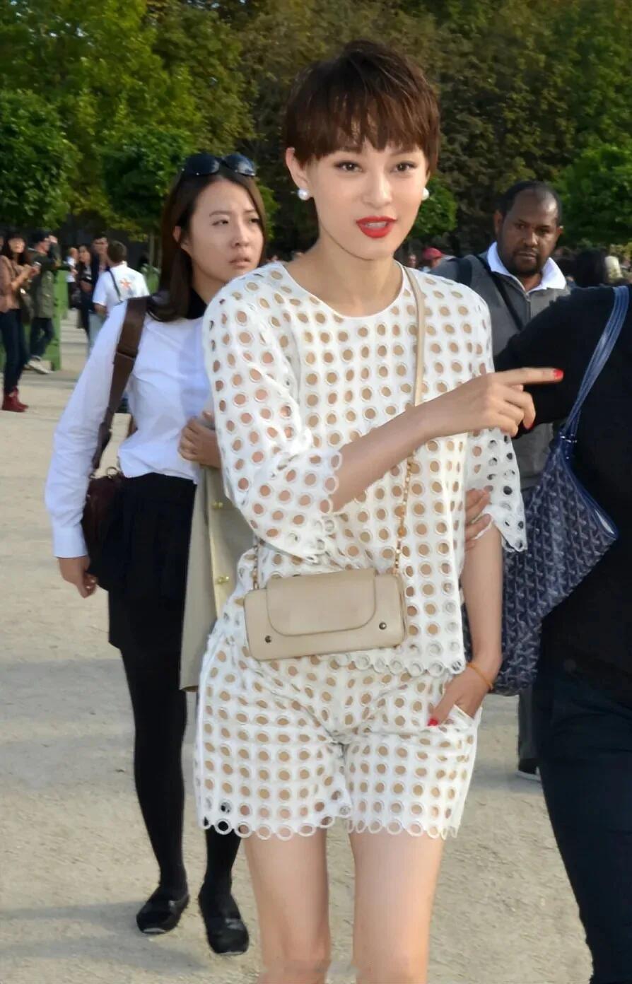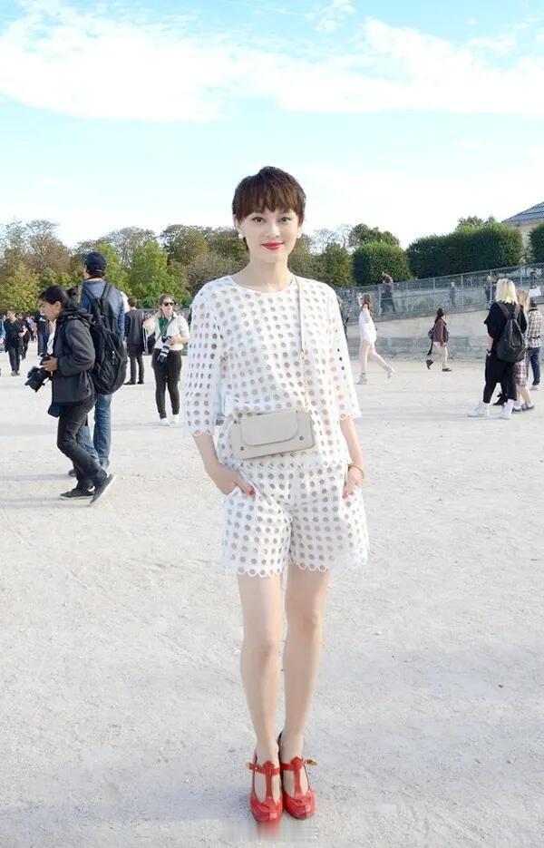 吴艳妮在成都穿着短裤大腿看起来很粗壮,表情自信又张扬
