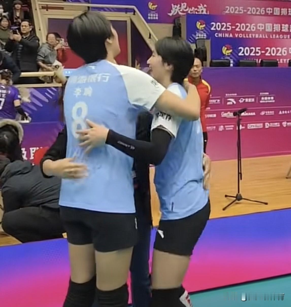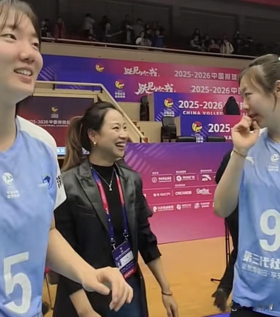 天津女排领导真的很有格局!今日主场作战,把之前天津女排的功臣,刚刚入职南开大学的袁心玥,请了回来,特意安排了VIP贵宾座,现场看到了袁心玥,说不定小袁入职,李珊也帮了很大忙!赢了上海女排赛后,王茜又来探班天津女排,路晶、刘敏乔、朱航霆、陈鹤心这些年轻队员一窝蜂似的冲下场找王茜拥抱,可以看出小队员们跟王茜的关系也是非常好的!