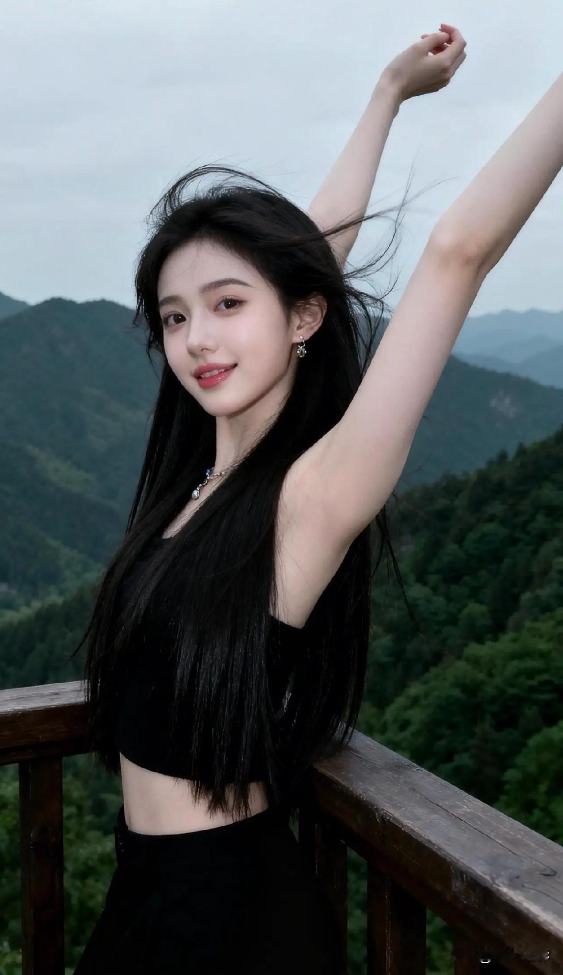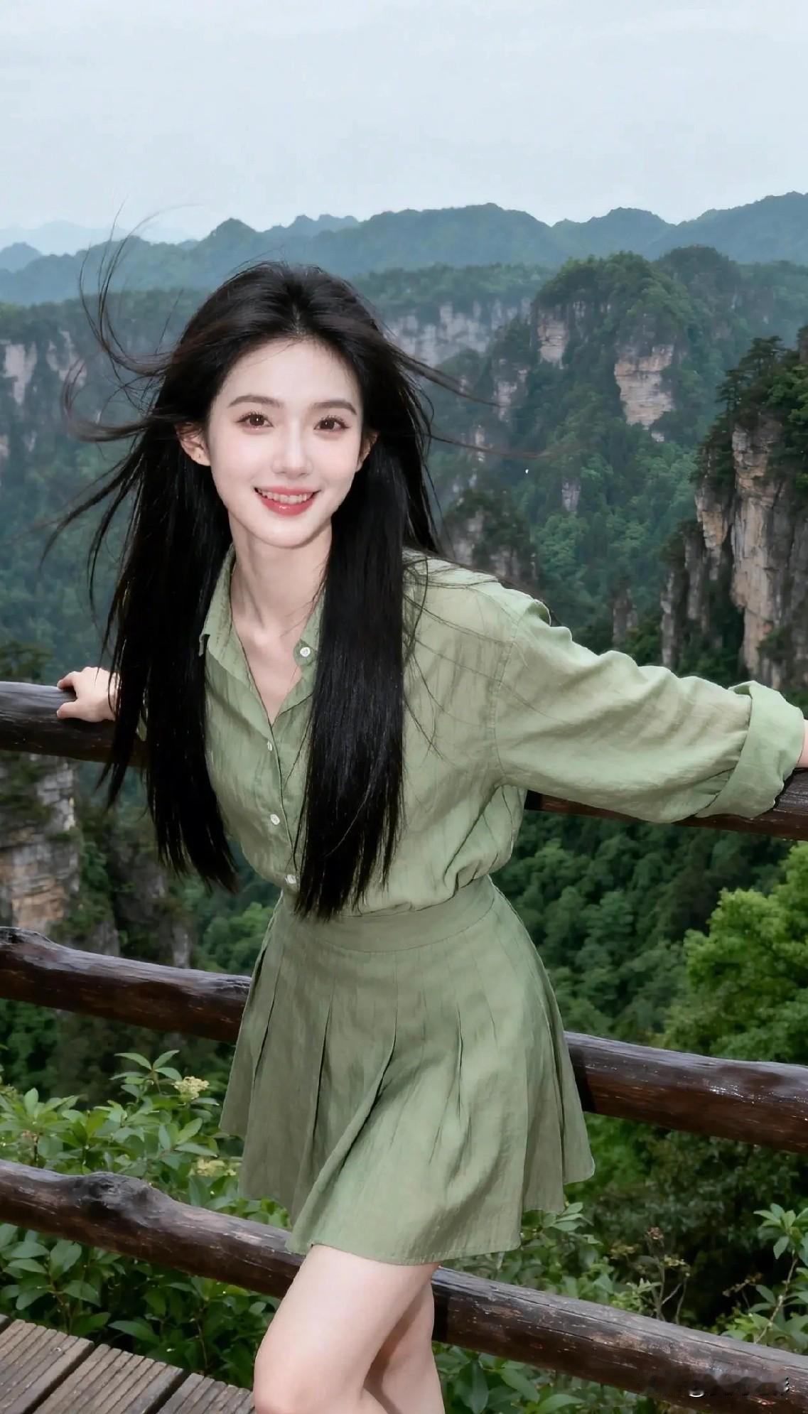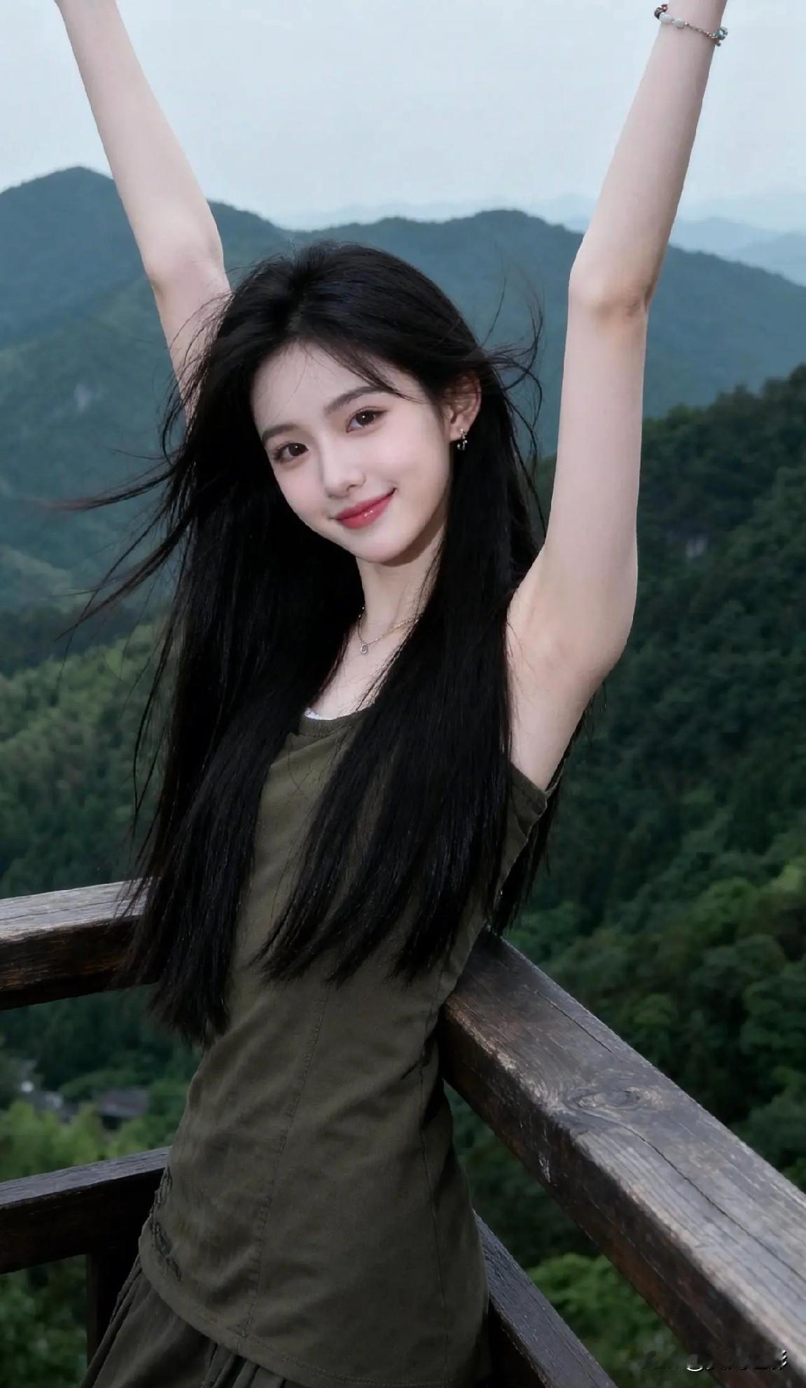 光之影 山间少女,自由飞翔,笑靥如花🌿💙 自然清新美少女 林间粉漾少女