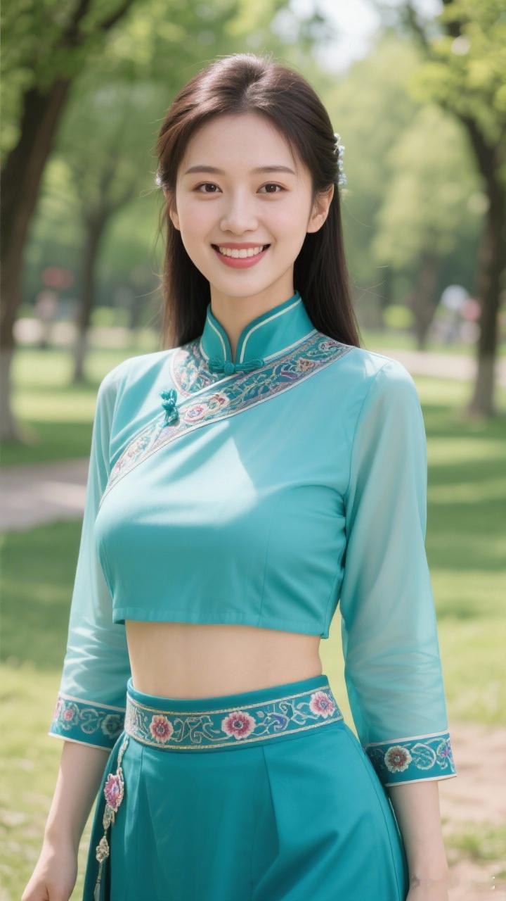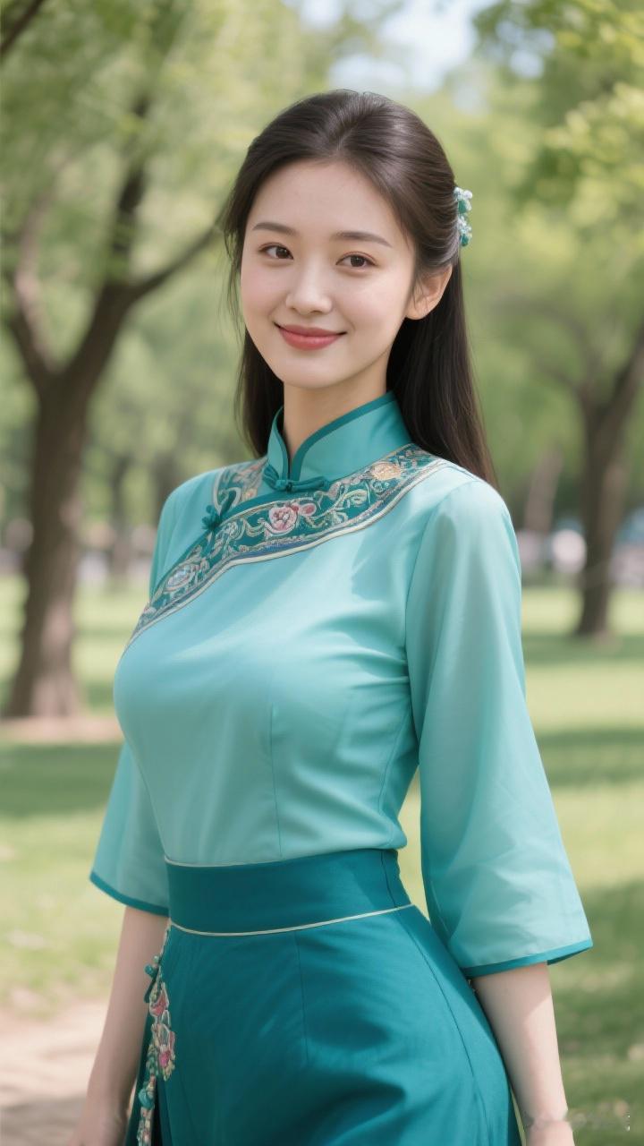 元气少女,清新蓝裙,公园漫步,笑靥如花