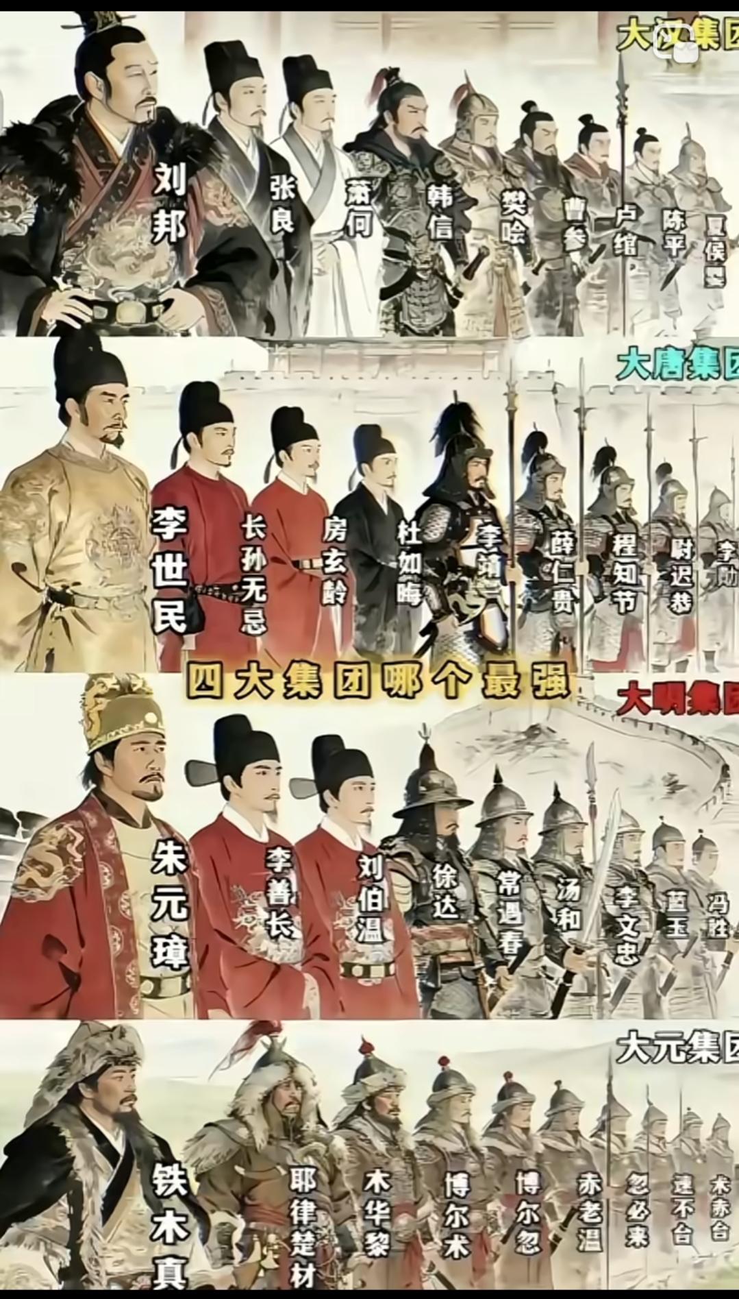 图中哪个王朝是最强? 是“混混”出生的刘邦带领的一众文武? 是“子承父业”的李世民建立的大唐盛世? 是乞丐出生的朱元璋建立的最后一个汉族王朝? 是成杰思汗带领蒙古铁骑建立的蒙古帝国?