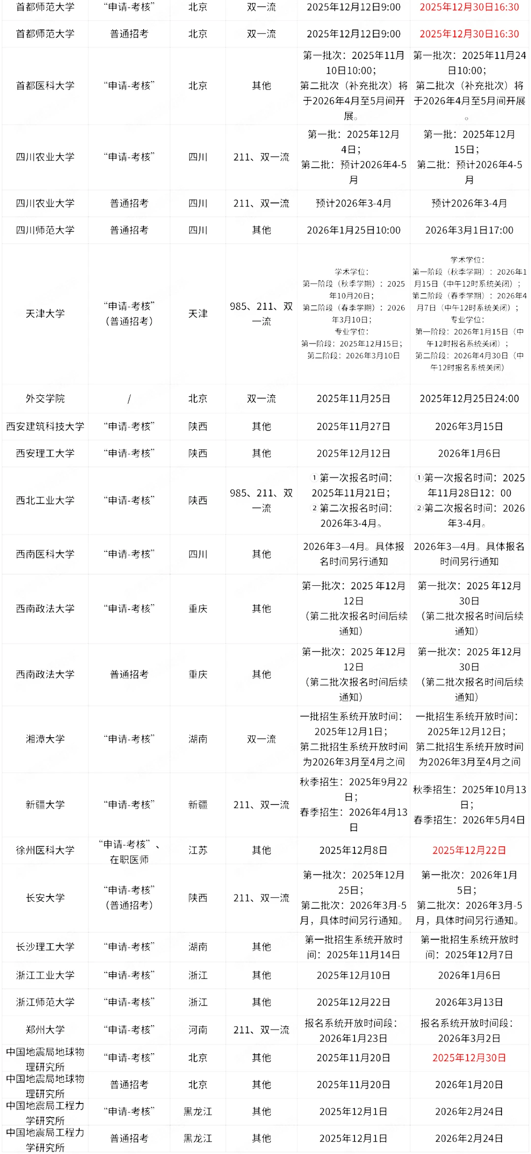 25考博已出高校-双非和双一流-截止11月14