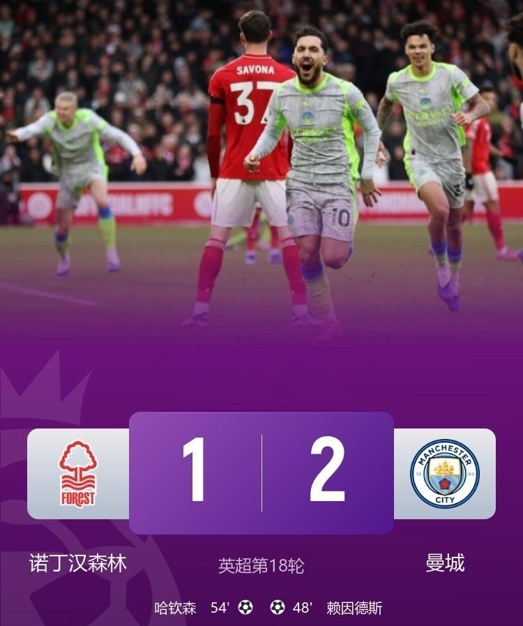 传射建功、先赛登顶 英超第18轮继续开战,积分榜排名第二的蓝月亮做客挑战诺丁汉森