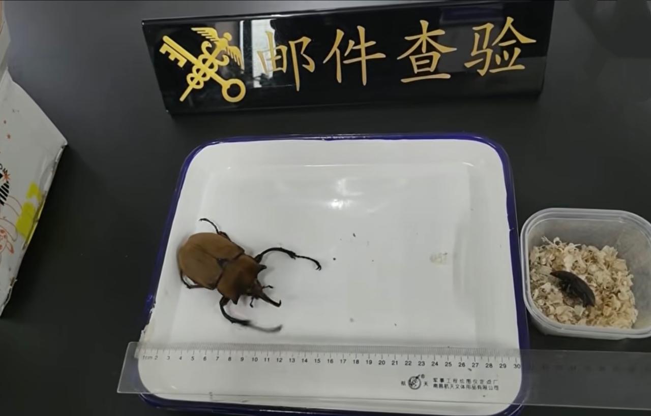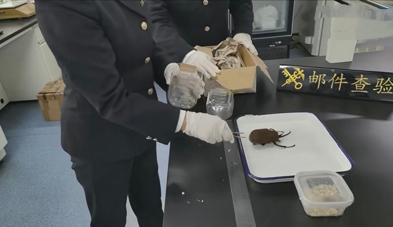 扣下了!南京一海关,监管中发现一个进境邮件不对劲,申报的是玩具,但是机检显示,里面有活物,打开一看,是一对儿甲虫夫妻。 这两头甲虫,一公一母,公的长10几厘米,头上有一根又长又直的角,母的体型则小很多,头上也没有角,跟公甲虫比,逊色很多。 经过鉴定,这两头甲虫,叫毛象大兜虫,产地分布在美洲,成虫顶多活半年,看着个子挺大,却没有啥攻击能力,是个憨货。 这种昆虫,有人喜欢养着当宠物,个头儿越大越值钱,10厘米的五百元左右,每长10毫米,就贵一百到两百元。 毛象大兜虫属于外来物种,是不能偷着运进境的,一旦查获,先把虫扣下,再由相关机构,进行鉴定和评估,然后决定如何处置。 至于这两个大兜虫的供应、运输等环节的相关人员,也会追根溯源,该罚的罚,情节严重的,还得负刑责。
