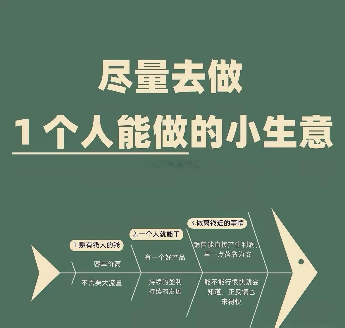 经济下行,钱越来越难赚,普通人千万别再瞎折腾、别再执念做大做强了!当下的大环境,大而全必死,小而美才是王道。这个时代,早就不是靠砸钱、靠堆人、靠拼规模就能成事的年代了。对我们普通人来说,最稳、最靠谱、最能赚到钱的出路,就是:深耕一个人就能干的生意,死磕「一人公司」,活成超级个体。这个趋势,不是昙花一现,而是未来长久的生存法则,看懂的人,已经悄悄开始上岸了。✅ 记住这些铁律,低成本运营,活下去,就是最大的赢!能一个人做的,绝对不要招人。招人就是招风险,工资、社保、管理全是成本,行情好的时候能扛住,行情差的时候,人就是最大的包袱,一个人的生意,赚多赚少都是纯的,不用分利,不用内耗,更不用担责任。能租的东西,绝对不要去买。设备、场地、工具,能租就租,能共用就共用,别为了所谓的“体面”和“长久”全款置办。经济下行,现金流比什么都重要,把钱攥在手里,比砸在固定资产上踏实一万倍,留着现金,就有无限退路和机会。能用的东西,绝对不要换新的。旧设备能用就用,旧工具能凑就凑,别追求极致的完美和高配。生意的核心是赚钱,不是享受,东西只要不影响产出,新旧根本不重要,省下的每一分钱,都是你的利润,都是你抗风险的底气。有二手的,绝对不要买新的。创业初期,极致抠门就是本事。二手市场里的好物比比皆是,性价比拉满,省下的钱能让你多撑一个月,多试一次错,多扛一次市场波动。不浪费一分钱,把成本压到极致,就是普通人的生存智慧。能做撮合赚差价,绝对不要自己压货。这是重中之重!压货就是压钱,就是压风险,行情一变,囤的货可能就是一堆废品。轻资产变现,信息差、资源差、服务差才是普通人的金矿,不用囤货、不用垫资,只做对接和匹配,稳赚不赔,无本万利。❌ 最后奉劝所有人:别孤注一掷,别赌一把干大的!经济下行期,最忌讳的就是贪心和赌性。别总想着“搏一把,单车变摩托”,别把全部身家砸进一个项目里,别幻想着靠一次冒险就能翻身。普通人的抗风险能力太弱了,一次赌输,可能就是万劫不复,再也爬不起来。我们要做的,是稳,是慢,是细水长流。少投入,多试探,能不花的钱一分不花,能精简的成本全部精简,先让自己活下来,再谈赚钱,先让小生意稳定盈利,再谈慢慢扩张。这个时代,能把一个人的生意做精、做透、做长久,能靠自己的本事稳稳赚钱,不用看别人脸色,不用担团队风险,不用被行情牵着鼻子走,就是顶级的能力。超级个体的时代,早已到来。一个人,一部手机,一台电脑,一个靠谱的项目,就能撑起一份安稳的收入,就能抵御时代的风浪,就能把日子过成自己想要的样子。经济下行不可怕,可怕的是看不清趋势,还在盲目跟风、硬扛硬拼。收起你的野心,放下你的浮躁,深耕小而美,死磕一人行,低成本运营,稳稳的赚钱,慢慢的变富,这才是普通人的破局之道!
