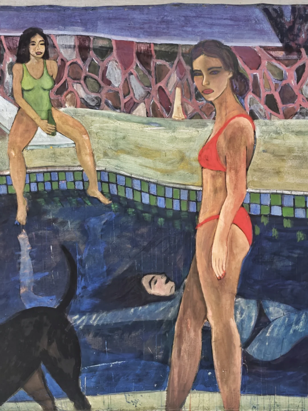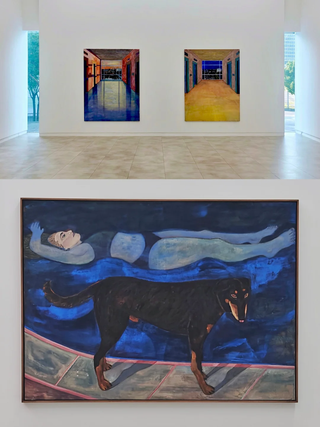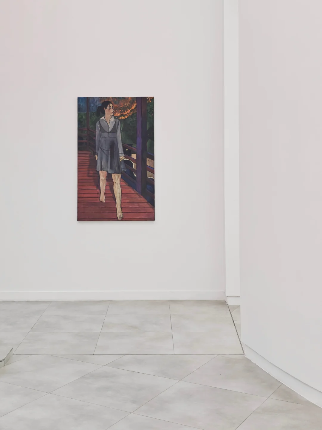 ??艺术家的作品打破了时间与空间线性结构,人物处于温柔与紧张、记忆与现实等交错地带,作品非传统叙事,更像氛围凝结,兼具日记般细腻与电影般节奏感,源于观察且被回忆浸染。粉色与钴蓝色频繁出现,如同回忆里的光斑,为画面增添独特的记忆氛围。