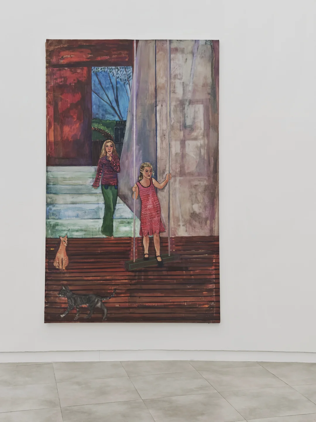 ??作品题材均源于艺术家自身生活,聚焦细腻日常与温柔片刻,拒绝宏大叙事。《Fond Pond Doux(two sisters)》中荡秋千的是她的妹妹,《UCLH》中病床上的是她的母亲,还有柏林地铁站旁摆姿势的女孩、特立尼达酒吧里的高个男人等生活化场景。