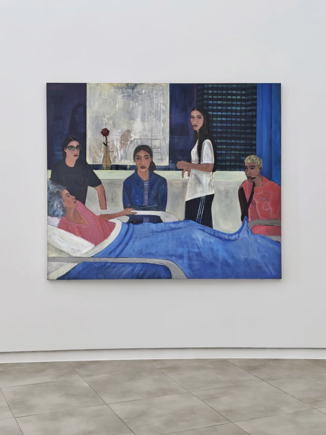 ??艺术家会将自己悄悄画进作品,《UCLH》中她的面庞被光线遮挡,以柔和的炭蓝色调呈现轮廓,既作为画者,也以女儿的身份留在画面场景中。