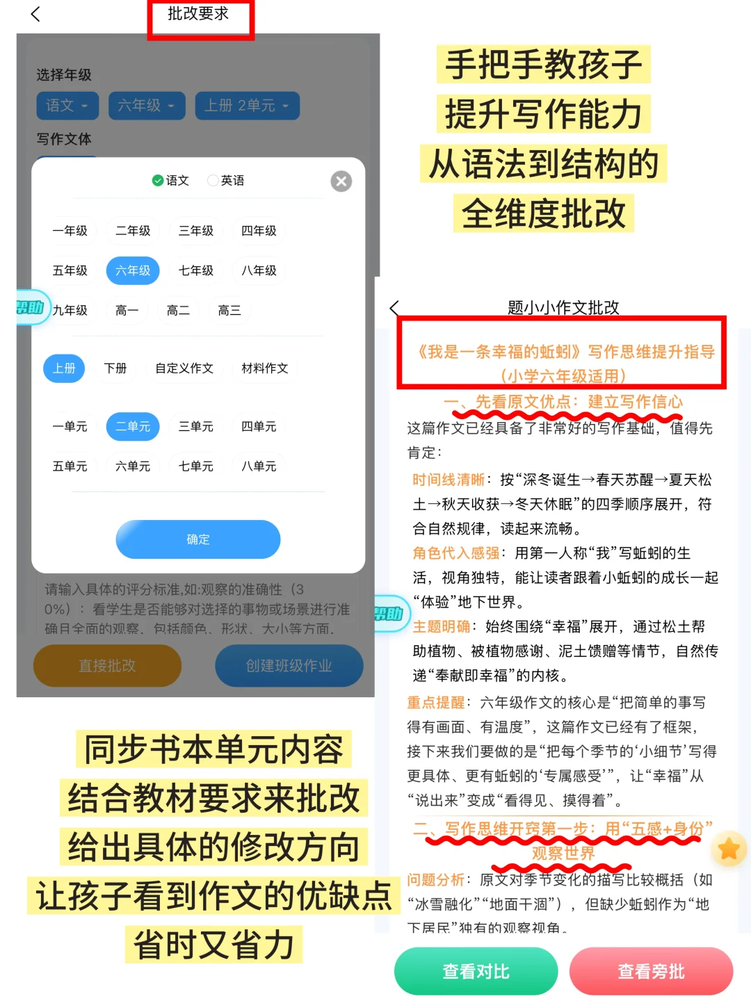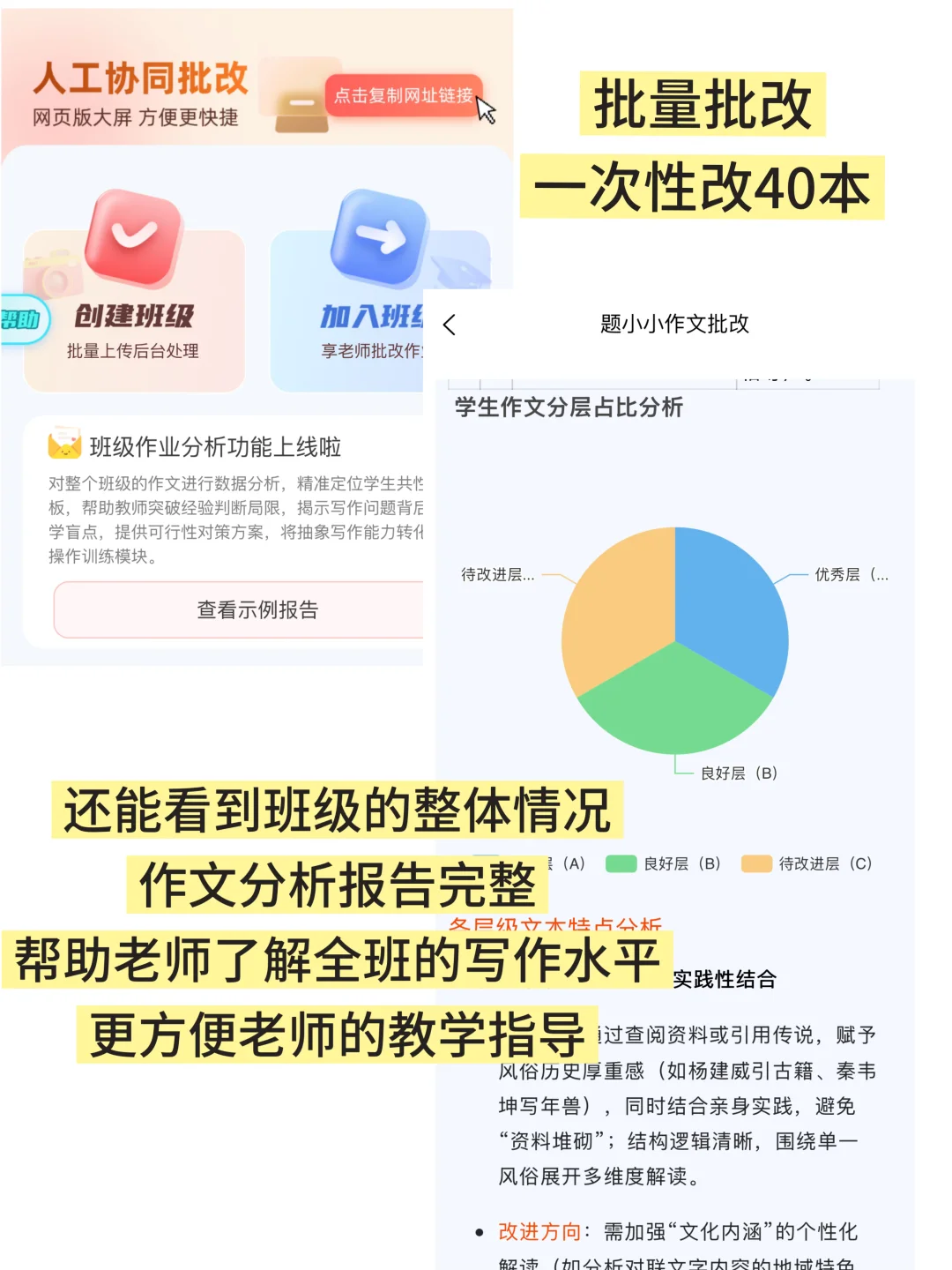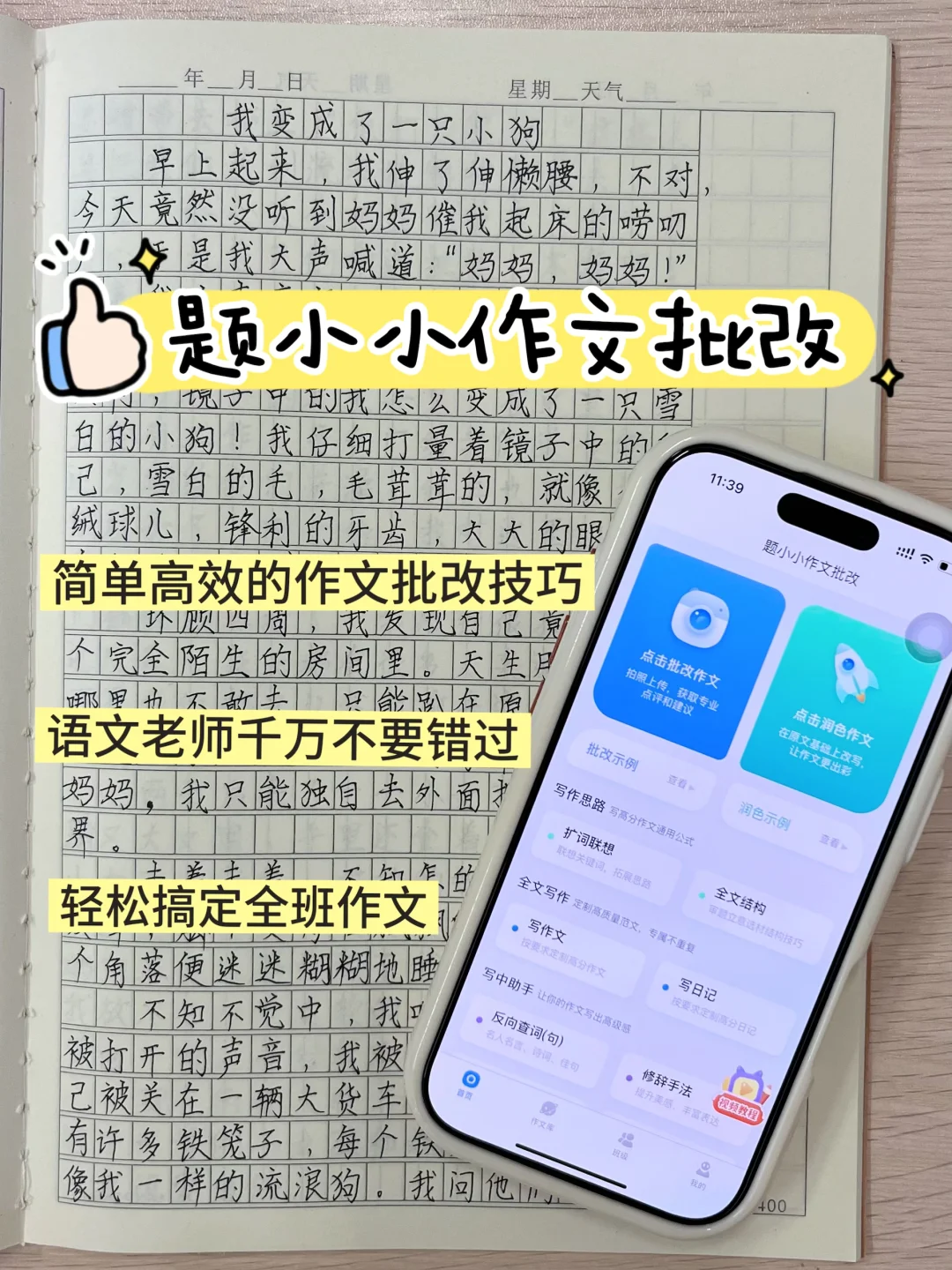 ✨国庆假期尾声将至,要返工上班啦!一想到办公室攒着的厚厚一摞学生作文就头疼,但还好有【题小小作文批改】,我这几年经常用的教学小助手,一个帮助语文老师轻松“清零”作文堆的APP,用AI实力化解老师们的批改难题。