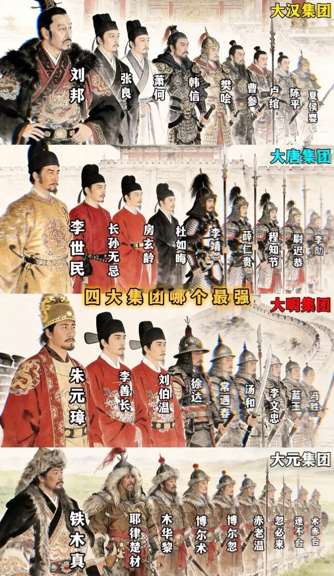 以你对历史的了解,大汉、大唐、大明、大元这四大集团,哪个最强?