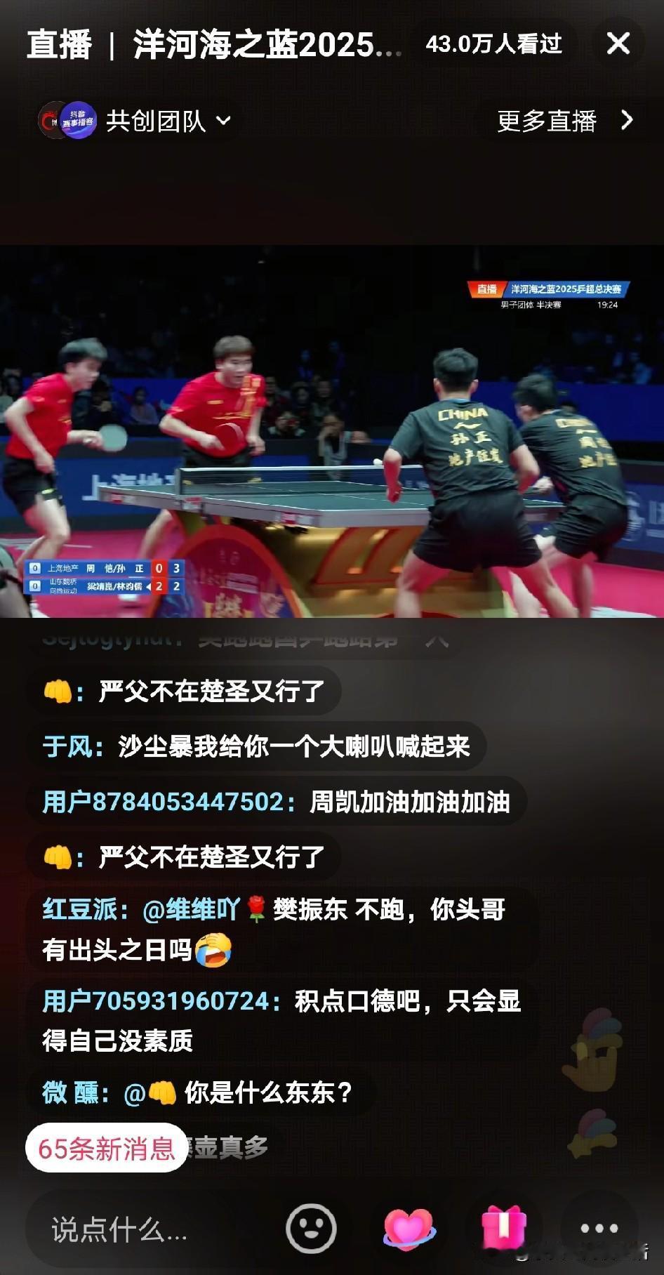 简直不忍直视!王楚钦被饭圈围攻!山东魏桥对阵上海地产名单一出,王楚钦赫然再列,直播间就开始了对王楚钦的骂声。说句实话!这波操作上海队的粉丝做得确实不地道。全运会攻击人家一波,连许昕你们都给捎带着也骂了。乒超总决赛又来一波,这么明显的饭圈谁看不出来。王大力12月19日刚刚发布坚决抵制饭圈文化的通知,你们这样难道不给他打脸吗?看了直播间的弹幕真的是下不去眼。还有那些个知名博主视频直播公然引战的。王大力治理饭圈的任务任重道远啊!