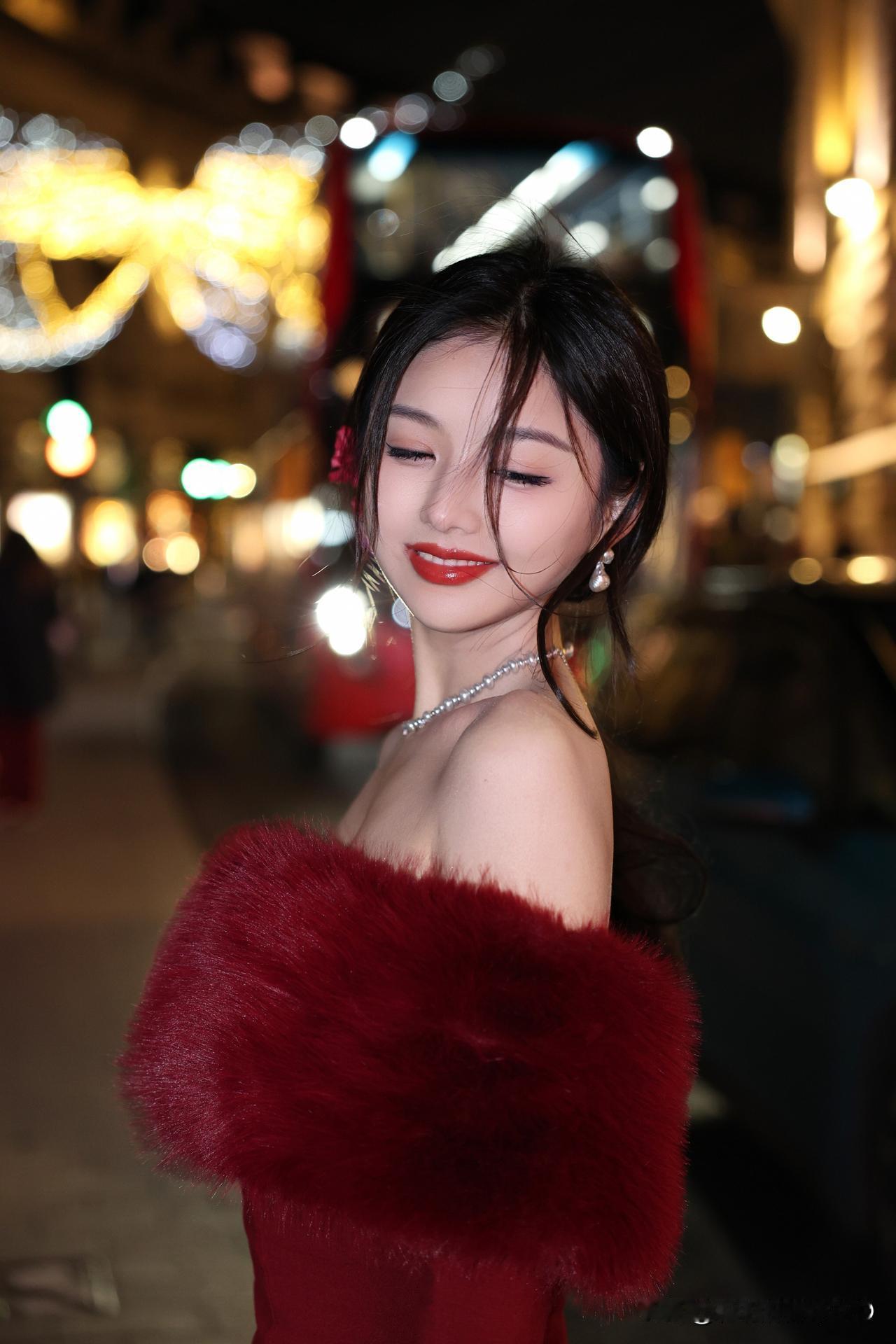 迪丽热巴红裙魅力