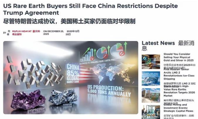 美国被中国这一招搞傻眼了!美媒在12月24、25日广泛报道,尽管中国与特朗普政府在2025年10月底达成稀土贸易协议,但中国仍持续限制对美出口永磁体等产品所需的关键稀土原材料。 首先得搞明白,那份协议本身就不是“一刀切”的全面放开,国际贸易协议从来都不是简单的“签了就必须无限制供应”,里面必然留着基于各国国内法规和国际规则的调整空间,尤其是涉及稀土这种特殊资源,不可能不考虑资源保护、产业安全这些关键问题。 从国际规则层面看,这事儿完全站得住脚。WTO的规则里早就给成员国留了口子,比如GATT 1994里的一般例外条款就明确,为了保护可枯竭的自然资源,成员国可以采取出口限制措施,只要不是搞歧视性对待就行。 中国的稀土资源虽然储量不小,但开采和提炼过程对环境影响极大,而且属于不可再生的战略资源,用一点就少一点,从长远发展考虑,控制原材料出口速度本来就是负责任的做法,这完全符合国际社会公认的资源保护原则。 更何况,规则里还允许为了维护国际和平、防止武器扩散采取管制措施,这可不是随便找的借口,确实有不少企业之前借着民用名义把稀土原材料转去生产军事用途的产品,中国收紧管制就是在堵这些漏洞。 再看美国自身的情况,其实是他们自己把供应链的“命门”交到了别人手上。美国国内虽然也有稀土矿,比如加州那个矿山能产点矿,但根本没有完整的加工产业链,想把矿石变成能做永磁体的关键原材料,还得依赖进口。 数据摆在那儿,这些年美国用的稀土化合物和金属,七成以上都来自中国,剩下的那些从马来西亚、日本进口的,追根溯源原料还是中国的。 更要命的是,美国自己的回收能力特别有限,从电池、永磁体里回收的量连零头都不够,等于完全卡在了原材料供应这一环。之前全靠中国稳定输出,现在稍微收紧限制,他们自然就慌了神,毕竟重新建加工产能不是一天两天的事,没个三五年根本起不来,短期内根本找不到替代来源。 中国这么做更重要的是出于自身发展的考量,跟针对美国没关系。这些年中国一直在推动稀土产业升级,不想再只卖廉价的原材料,而是要做高附加值的产品,比如直接生产永磁体成品,这样既能提高经济效益,也能减少原材料过度开采带来的环境破坏。 要实现这个目标,自然得控制初级原材料的出口量,把更多资源留给国内的高端制造业。而且这都是依法办事,中国有《出口管制法》,这次调整完全是按照法律规定来的,之前还主动通过双边机制给包括美国在内的国家和企业通报过合规要求,民用领域的需求根本没受影响,只是把那些想违规用于军事领域的路子堵死了。 再说了,中美之间的经贸互动从来不是单方面的,之前美国一边跟中国谈协议,一边还在扩大对华制裁、增加出口管制实体,甚至对中国航运企业收高额费用,这种“言而无信”的做法才真正破坏了合作基础。 中国的限制措施本质上是维护自身战略利益和全球供应链规范,既没违反国际规则,也符合协议里的例外条款,更不是针对美国的恶意打压,只是美国习惯了过去的资源供应模式,突然面对合规管控才会显得手足无措。 毕竟稀土作为“工业味精”,尤其是永磁体所需的那些关键品种,战略价值太高,任何国家都会把它的供应安全攥在自己手里,中国这么做只是正常的国家战略选择而已。