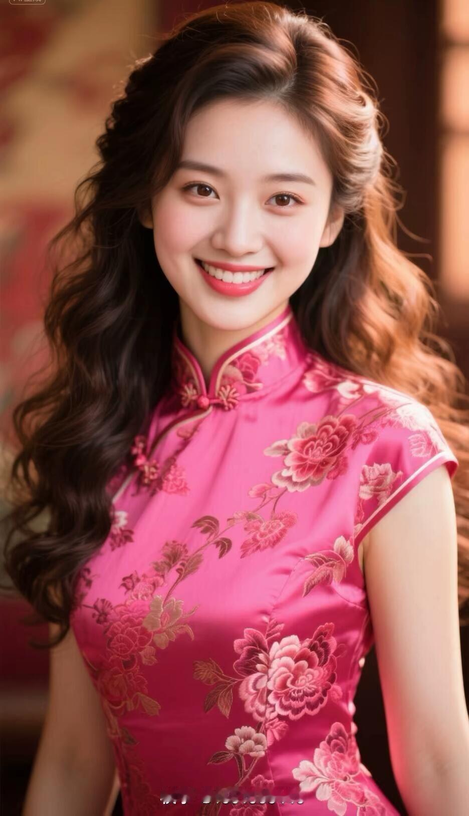 惊艳的粉色旗袍,甜美笑容,复古优雅,气质满分!🌸💃