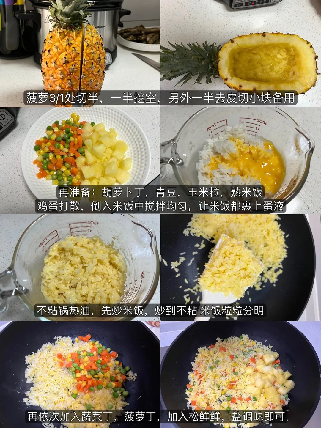 🍀菠萝炒饭:酸甜可口拯救没食欲,吃菠萝的季节一定不要错过这道菜!