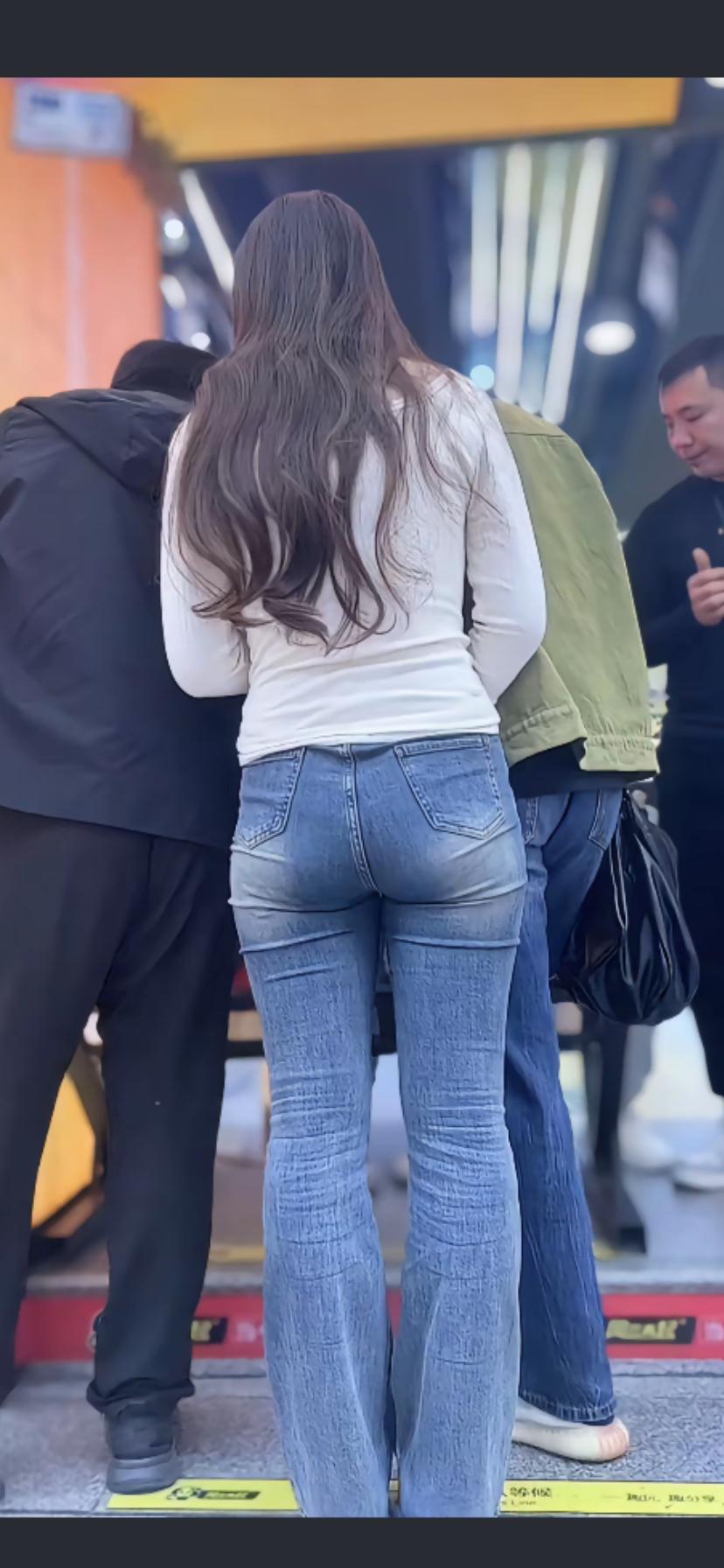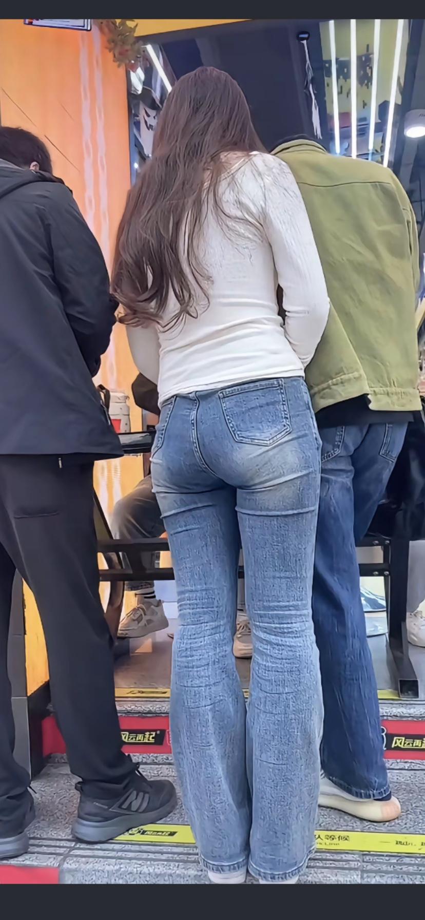 背影杀!时尚牛仔裤搭配白色上衣,走在街头,回头率超高!