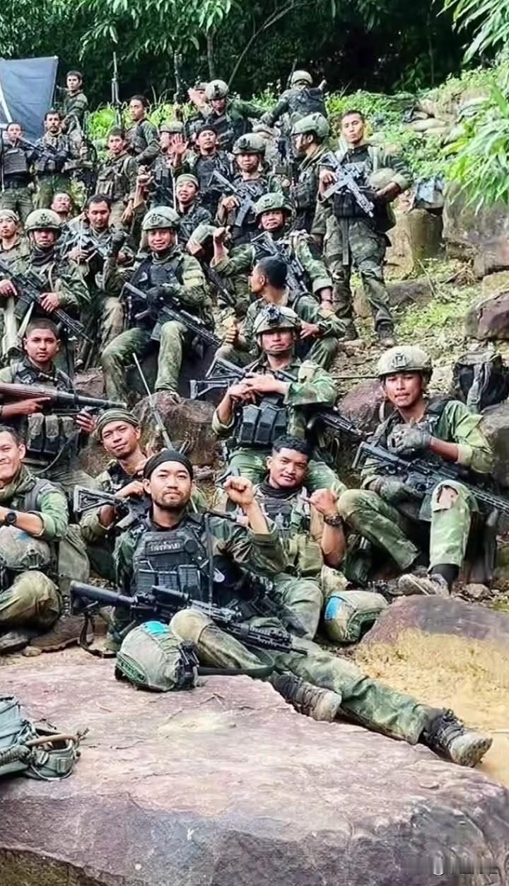 泰军大胜柬埔寨军队,士兵们聚在一起休息合影,但是现代战争中,这样的场面还是非常危险的。 如一个海马斯火箭炮打了过来,估计这一群人就会全部报销!