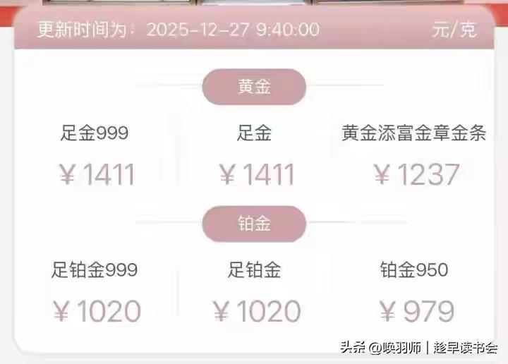 有人账面一夜浮盈18万,市场陷入狂热。贵金属市场近期上演暴涨行情,白银单日涨幅超10%,铂金首饰破千元每克。但专家指出,这轮暴涨是货币预期、避险情绪与工业需求叠加的“完美风暴”,已进入情绪驱动的危险阶段。 风险正在急剧积聚:白银买入价与回收价存在巨大“剪刀差”,变现可能面临大幅折损;部分白银基金出现近30%的畸形溢价,一旦情绪退潮可能瞬间崩塌。对于普通民众,此时应保持极度理性,明确投资仅为资产配置而非投机,坚决远离高溢价产品,并充分考虑流动性风险。当全民热议时,往往已是行情尾声,敬畏市场、避免跟风是保护自身财富的关键。白银价格疯涨 黄金白银价格 白银市场行情 白银贵金属 黄金白银 白银价格 白银价格行情 白银一克 铂金价格波动 铂金回收行情 贵金属行情走势 铂金行情分析 贵金属行情分析 铂金走势 贵金属行情