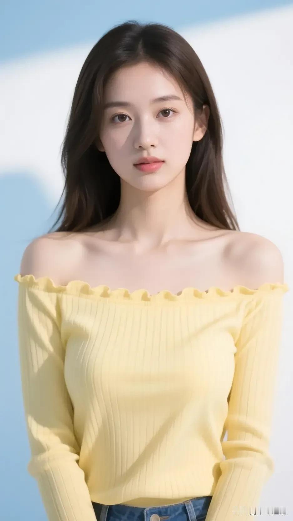 鹅黄露肩衫揉着清甜,浅发垂着软萌,眉眼间漾着夏日汽水般的清爽 玫粉色衬衣裙 清蓝长裙