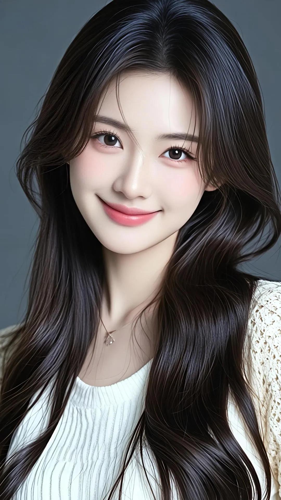 古风美人,笑靥如花,蓝衣飘飘,宛如仙子。