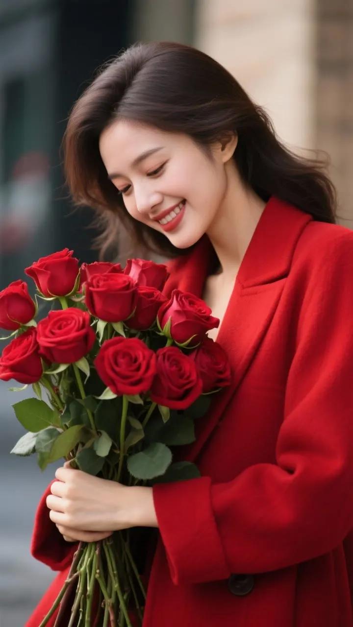 红衣佳人,花环点缀,笑靥如花,喜庆氛围