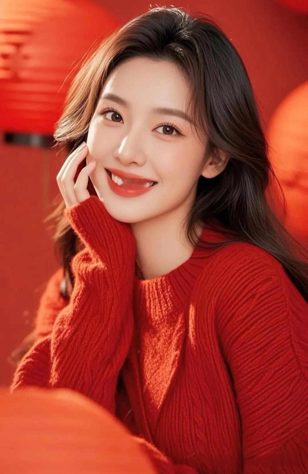 红衣佳人,花环点缀,笑靥如花,喜庆氛围