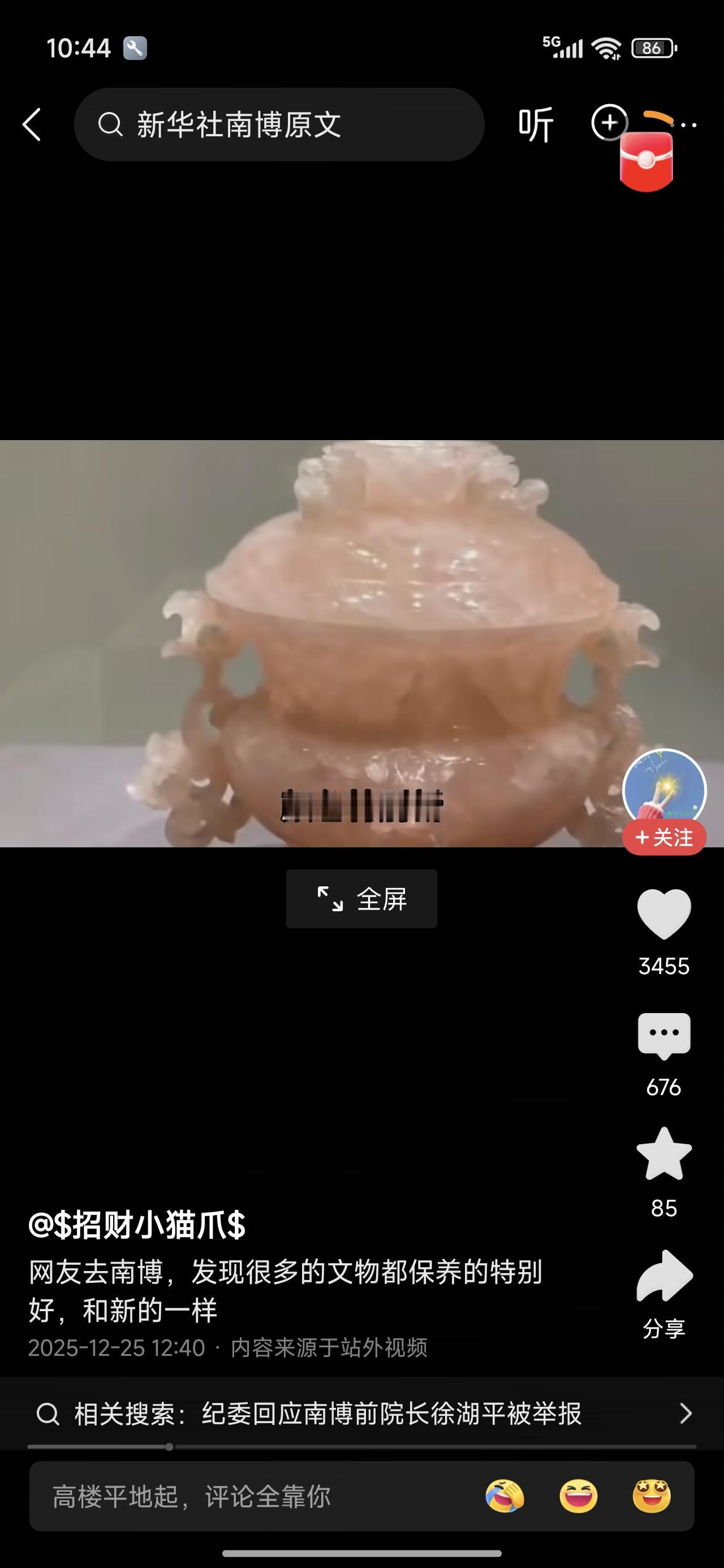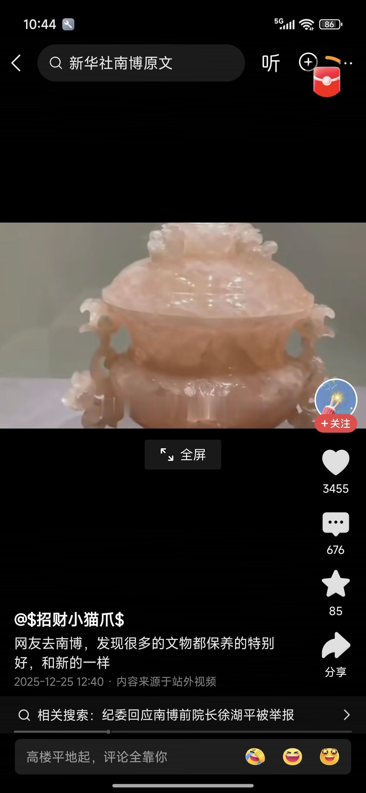 网友的眼睛都变尖了,不出事都没发现,一出事都去当侦探。看清代的老物件,一个个的都很鲜亮,像昨天刚做出来的一样。 徐老馆长这会儿是寝食难安,还有那不嫌事儿大的一天天去发掘新料。 中饱私囊的也没见多少。高大上的人物咱也见不到。这次明晃晃的摆出来给咱看了,真是脑洞大开。有钥匙,有权利就 OK了。能做到天衣无缝实际上是做梦,要想人不知除非己莫为。 只是戏做大了,收场通常会很难。