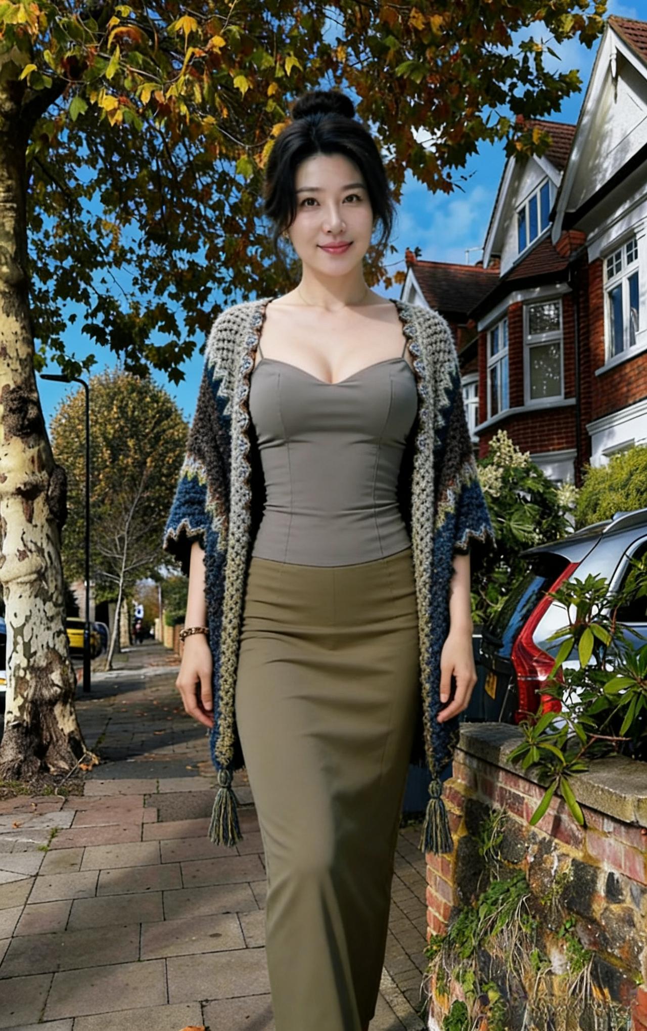 秋巷枫初染,佳人立砖墀。 织衣披彩缕,素衽映清姿。 云影浮高树,车声过短篱。 异乡逢秀色,如见故园枝。