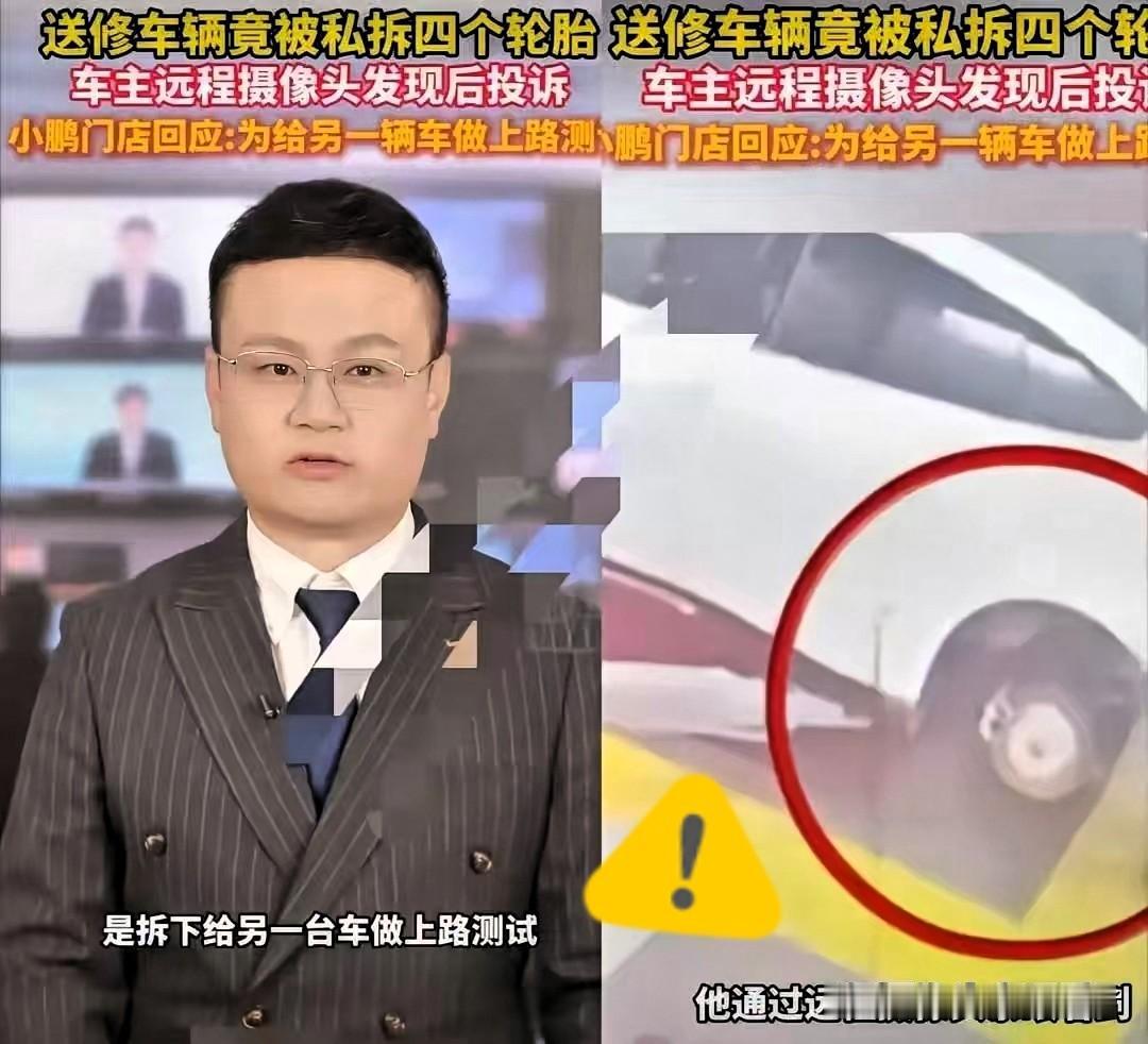 "严查到底!" 北京,一男子将车送去维修,手机却突然收到提示,他打开摄像头一看,发现自己车上的4个轮胎被维修人员拆了下来! 他第一时间把画面录屏,打电话给前台,结果一句"测试需要,借用一下"把他气笑了。 这波操作真是让人大开眼界。车主王先生把小鹏P7送去官方门店修智能驾驶,结果远程摄像头里,俩维修工正蹲着拆他车上的四个轮胎,拆完还抱着往另一辆车上装。人家打电话问,店里还理直气壮:"另一辆车要测试抖动,没备用胎,借你的用用。" 这哪是借,分明是偷。更气人的是,轮胎装回去的时候,师傅就用扳手拧了拧螺丝,连动平衡都没做。懂车的都知道,拆过的轮胎不做动平衡,跑高速方向盘能抖成筛子,这不是坑钱,这是要人命。 其实这种事不是第一次了。去年有个车主送车去修变速箱,回来发现四个轮毂被换成旧的。前年还有个女士,修完车发现导航被拆了装到别人车上。这些维修店就仗着车主不在场,把客户的车当成了"零件仓库"。 法律上对这种行为有明确规定。根据《消费者权益保护法》,维修店故意隐瞒真实情况,使用旧件冒充新件,或者偷换零件,都构成欺诈。一旦被认定,车主可以要求退一赔三。 法院判过不少类似案子。成都有个车主修车花了3万多,结果发现14项配件根本没换,法院判修理厂赔了2万多。还有个案子,修理厂用了二手配件,法院直接判了三倍赔偿。 维权的时候要注意,修车前一定要签书面合同,白纸黑字写清楚维修项目、配件质量。送修前后最好拍照录像,保留证据。万一发现被坑,第一时间固定证据,然后打12315投诉,或者直接起诉。 说到底,汽修行业乱象频发,就是因为信息不对称。车主不懂车,维修店就敢乱来。但法律不是摆设,欺诈行为一旦被查实,惩罚性赔偿可不是闹着玩的。 各位读者你们怎么看?欢迎在评论区讨论。