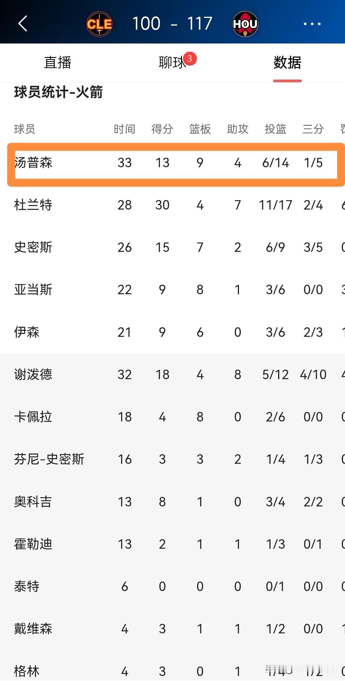 谁能拯救一下火箭新星阿门-汤普森的三分球?在今天火箭主场以117:100战胜骑士的比赛中,阿门再次将自己不会投三分的缺点暴露无疑。 全场比赛下来,阿门首发出战33分钟,投篮14中6,其中三分球5中1得到13分9篮板4助攻,还出现了3次失误。 实事求是的说,如果阿门想要迈入超级巨星的行列,那么他必须增强自己的三分投射能力,不然的话他最多是一名全明星球员。