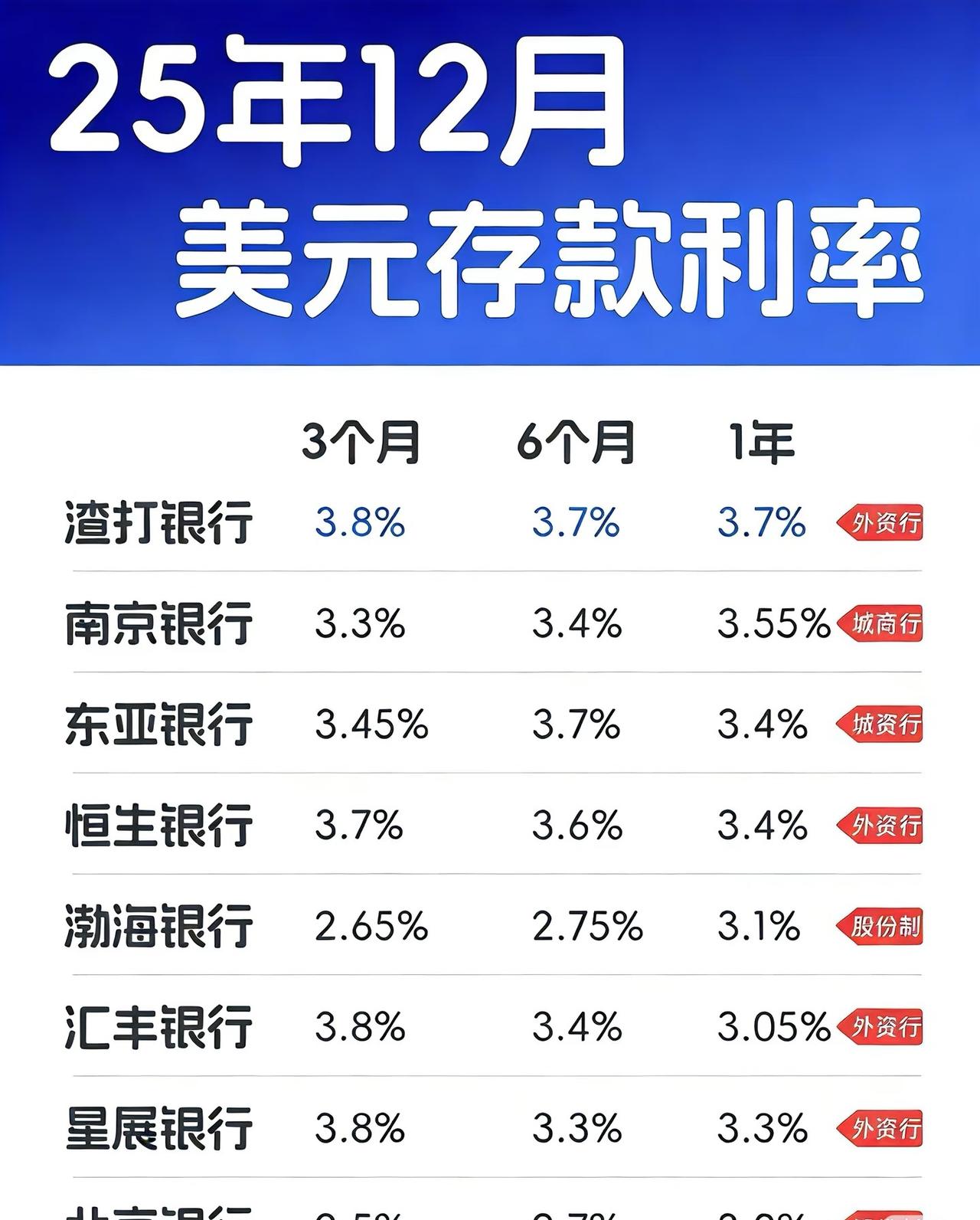 存款降息?还有比3.8%更高的吗? 国内银行全部都在降息,所以我认真去比了下外汇与国内的差异,国内想问问还有比3.7%一年更高的吗?