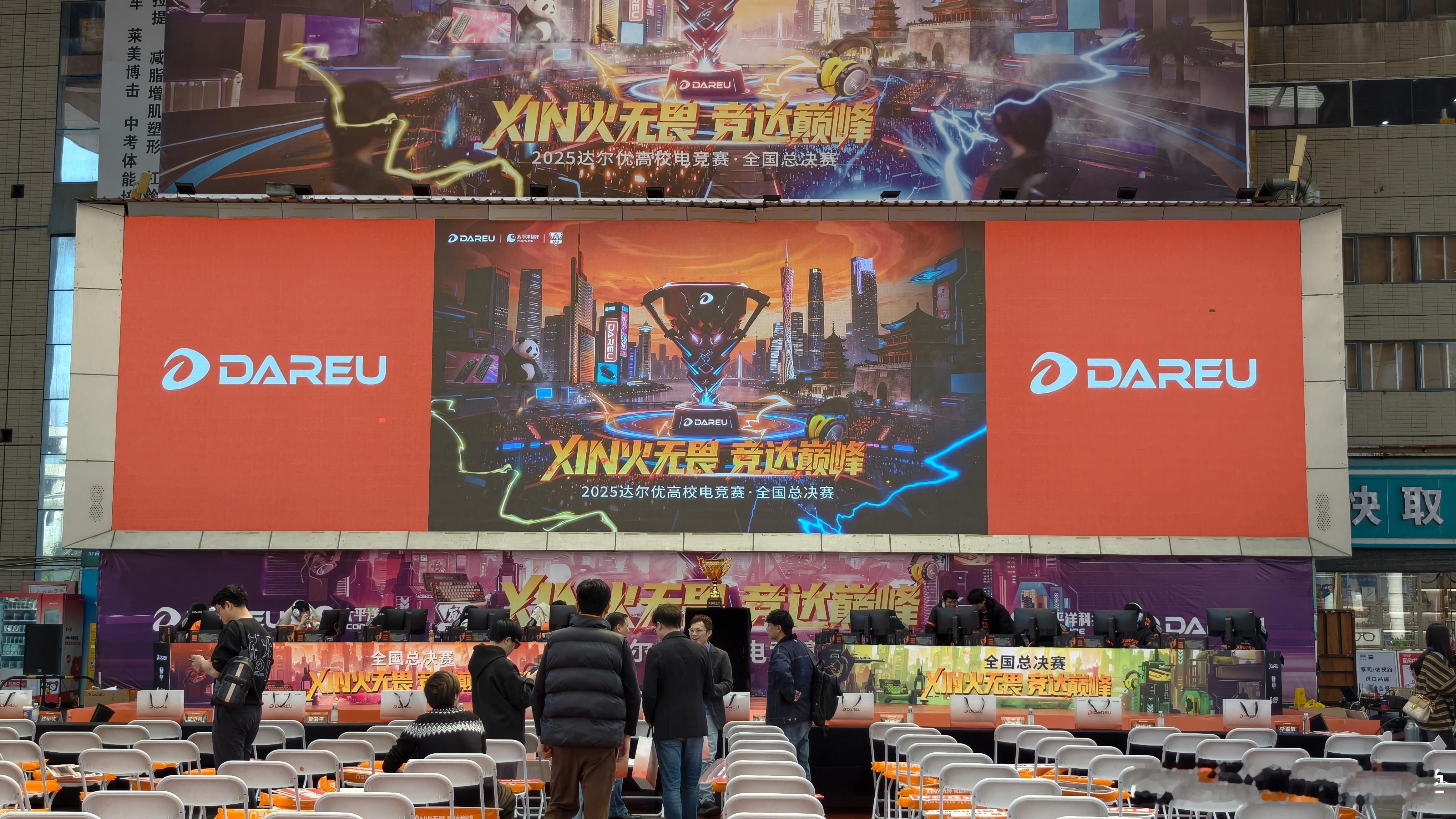 来广州大学城看2025达尔优高校电竞赛·全国总决赛了!四支队伍角逐冠军,现场竞赛氛围激烈得很啊~听说今天还有达尔优新品,不知道有没有机会上手试试