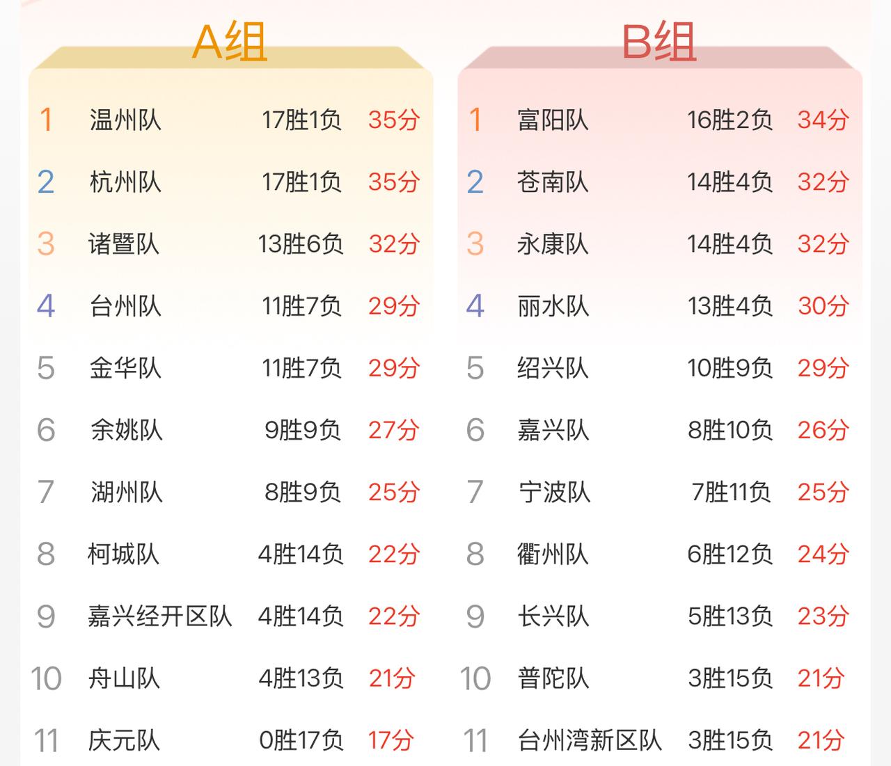 天才赛程安排师?把A组最后的晋级名额,定在了最后一场决出胜负,这就不得不让人怀疑是有剧本提前预设好的了! A组现在如果不出意外的话,金华和台州会打一场堪比总决赛激烈程度的比赛,结果很残酷,谁赢谁晋级,赢或者回家!压力给到了金华队,毕竟这一场是在金华主场,是优势也是压力! 双方其实都还剩两场,如果台州能赢杭州队,那么对阵金华队时就有着14分的余地,哪怕金华队最后一场赢了台州队,只要别超过14分,台州就还是能晋级,这个假设成立有一个前提,台州队能赢下杭州队,金华队赢不了温州队! 如果台州队赢不了杭州队,金华队也赢不了温州队,那么决定权就在金华队和台州队以及手上了,谁赢谁晋级!这个赛程确实精彩,大家觉得台州和金华谁会最后一个锁定晋级名额?台州队 金华队