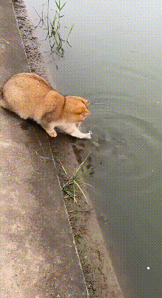 哈哈, 橘猫不打架了, 嘴馋了, 这钓鱼🎣手法真不错, 比我钓鱼强多了! [捂脸][捂脸][捂脸][捂脸][捂脸][捂脸]