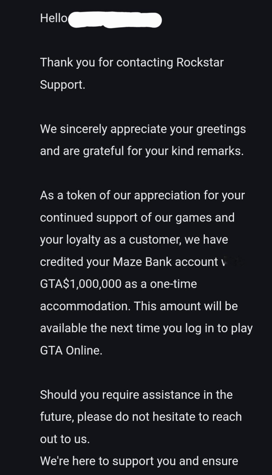 【玩家发祝福致信R星获赠百万游戏币】近日,一位《GTAOnline》玩家因发送