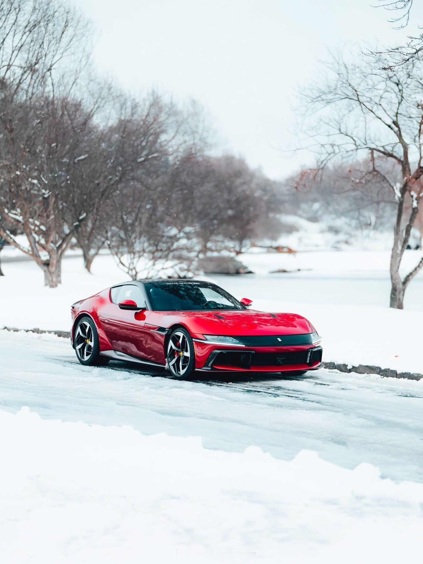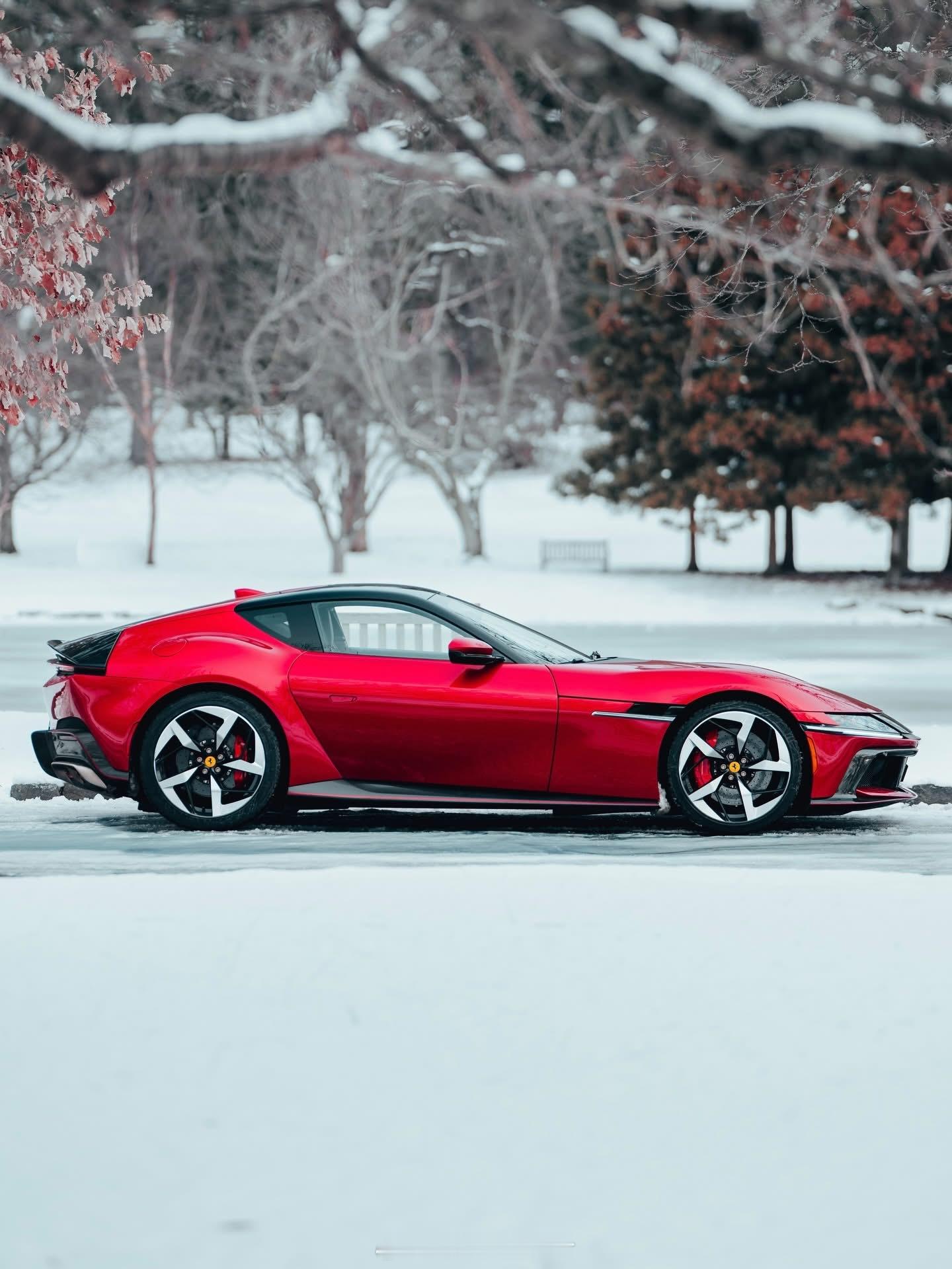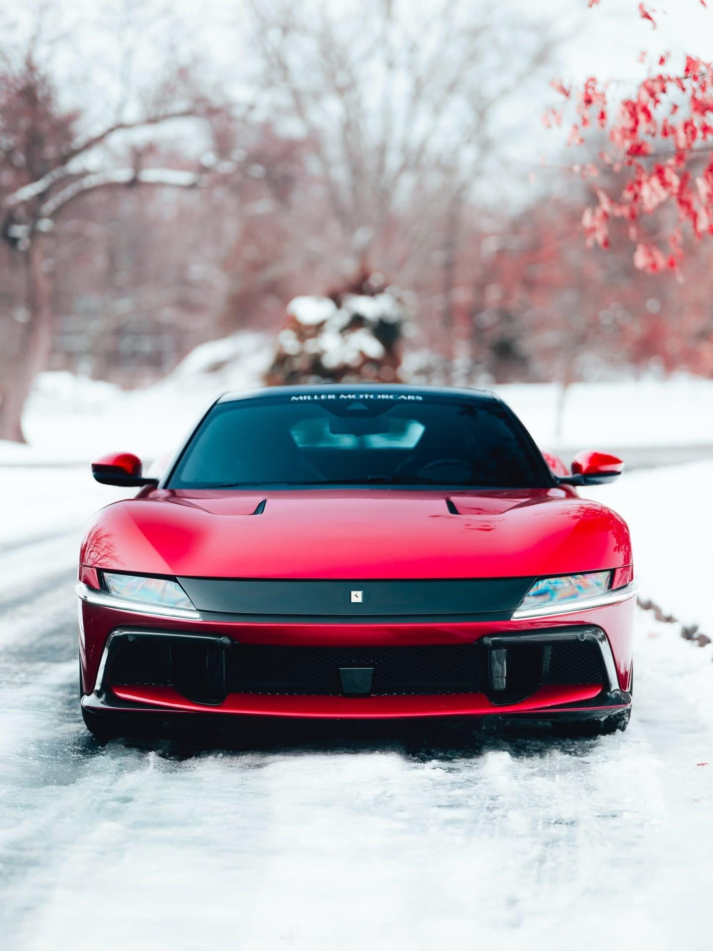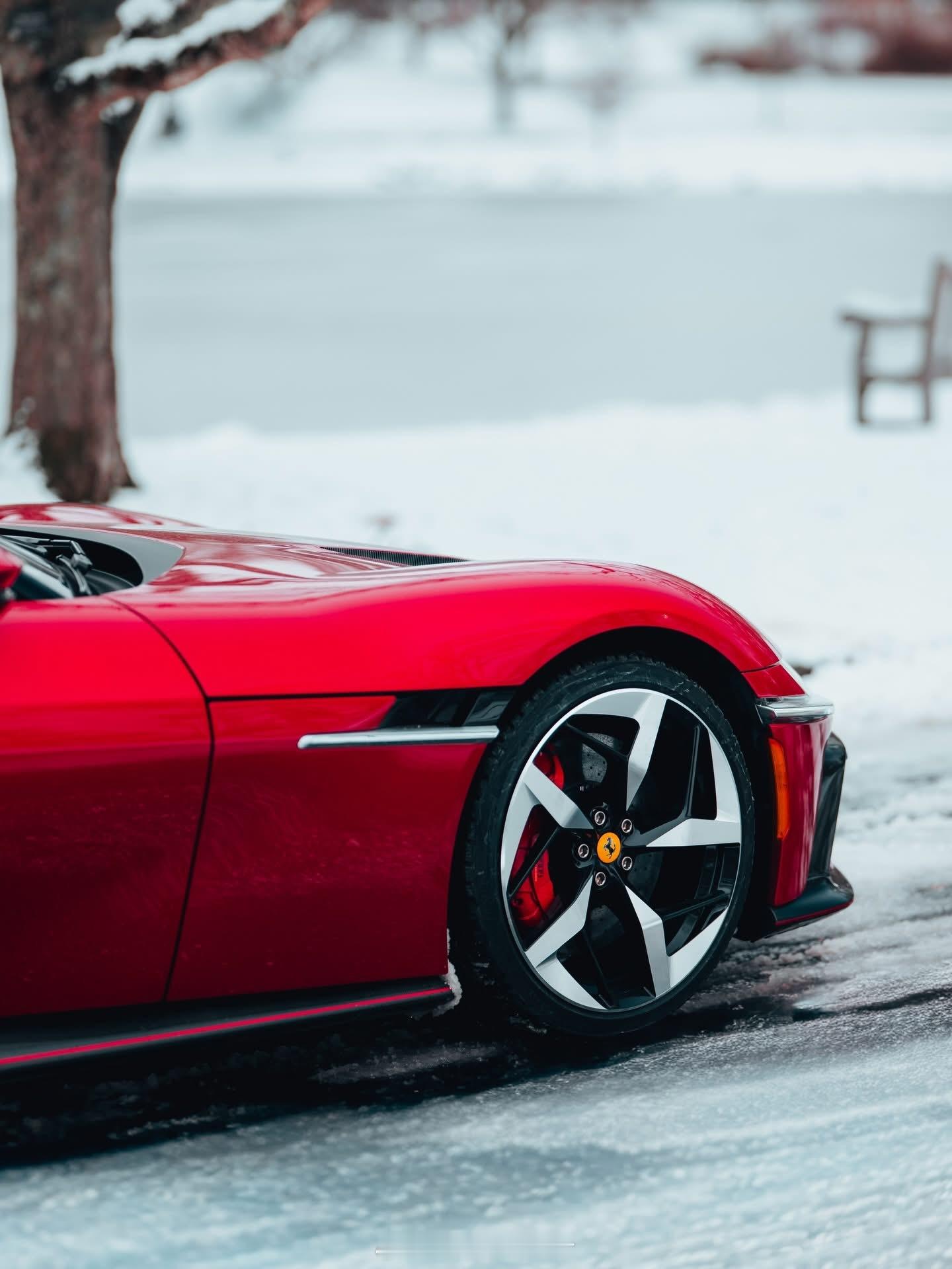 ❄️❄️❄️雪天红色跑车❄️法拉利12Cilindri🚗🚗🚗