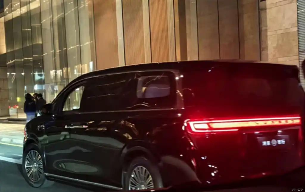 昨晚看到的鸿蒙智行首款MPV曝光了,伪装撕掉了,然后前灯和尾灯都已经亮起来了,看