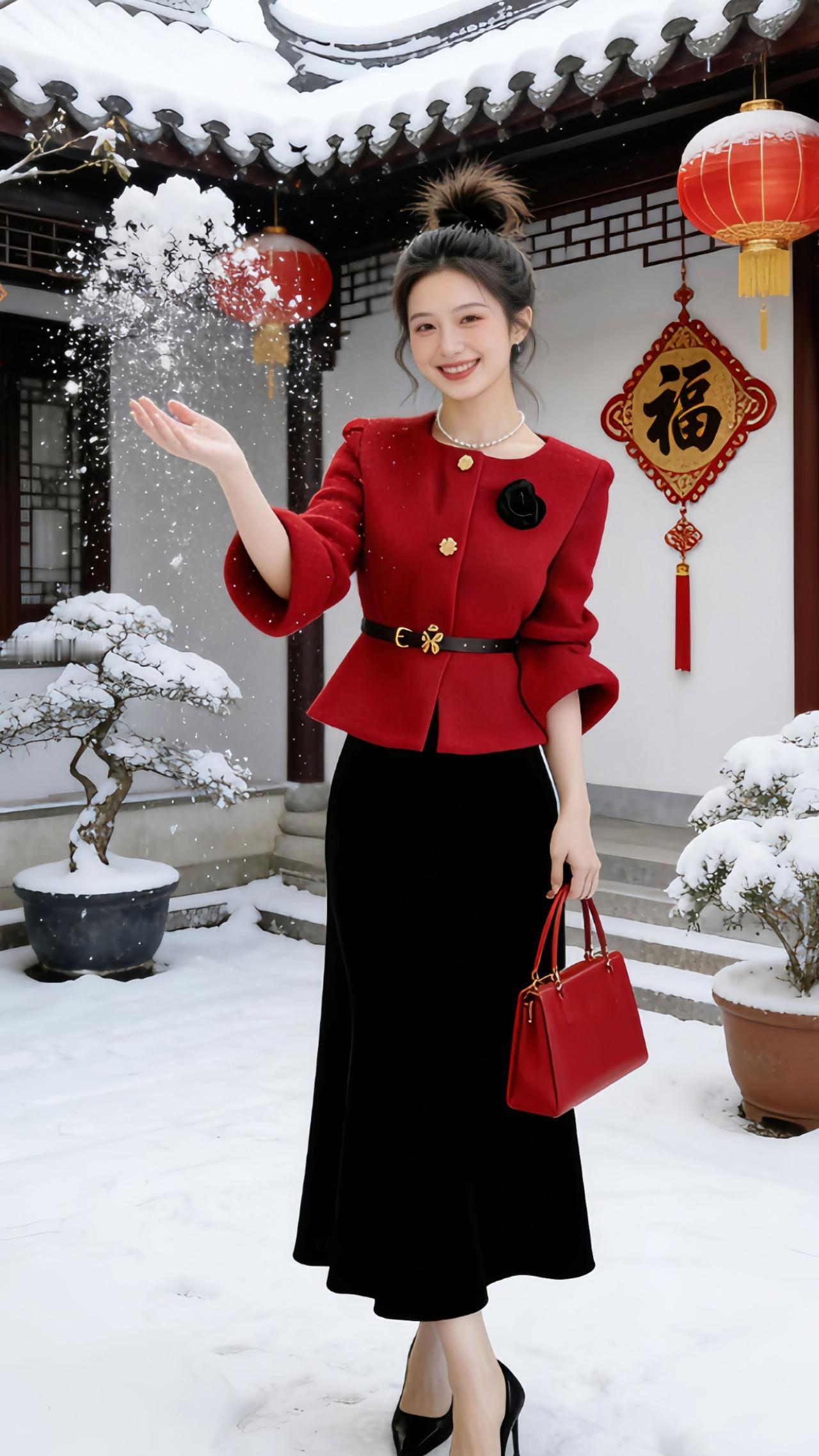 在服装店一眼就被这套过年红小香风套装戳中审美!红调衬得肤色超白,收腰版型掐出腰线,黑丝绒半裙又温柔又有质感,上手摸就知道面料多扎实,试穿后直接果断拿下~ 穿上新战袍去中式庭院拍雪景,扬雪、捧梅枝的瞬间氛围感拉满,红配黑的新年配色超吸睛,走亲访友穿它既体面又显气质,过年的仪式感全靠这套穿搭拿捏啦~新年战袍 过年穿什么 新年好物 新年装 高级感穿搭 @抖加🔥上热门🔥dou+🔥热点宝 @DOU+上热门 @图文带货帮扶中心