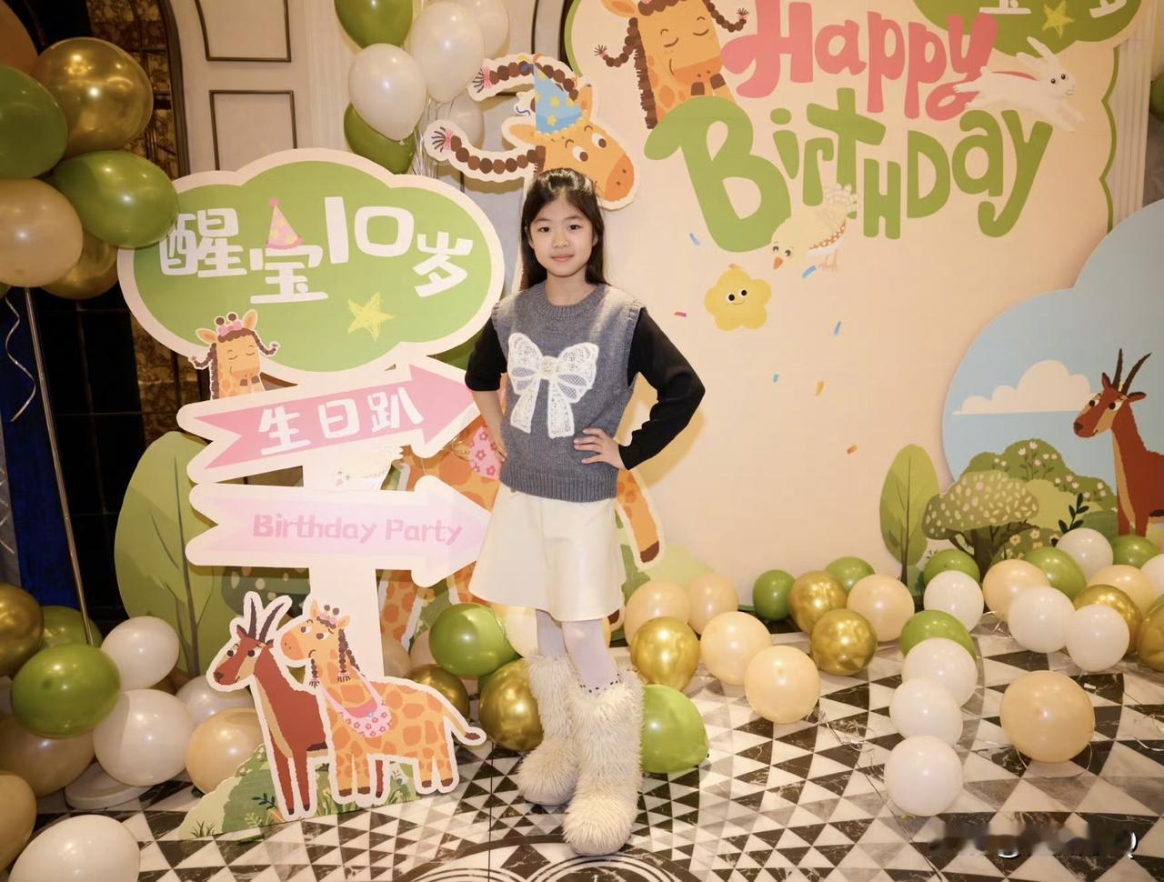 章子怡为女儿醒醒庆祝10岁生日,生日主题是动物园生日趴。不得不说章子怡的基因发挥作用了,醒醒变得比小时候好看太多了,也很高挑,脸型还挺像汪峰的大女儿小苹果。