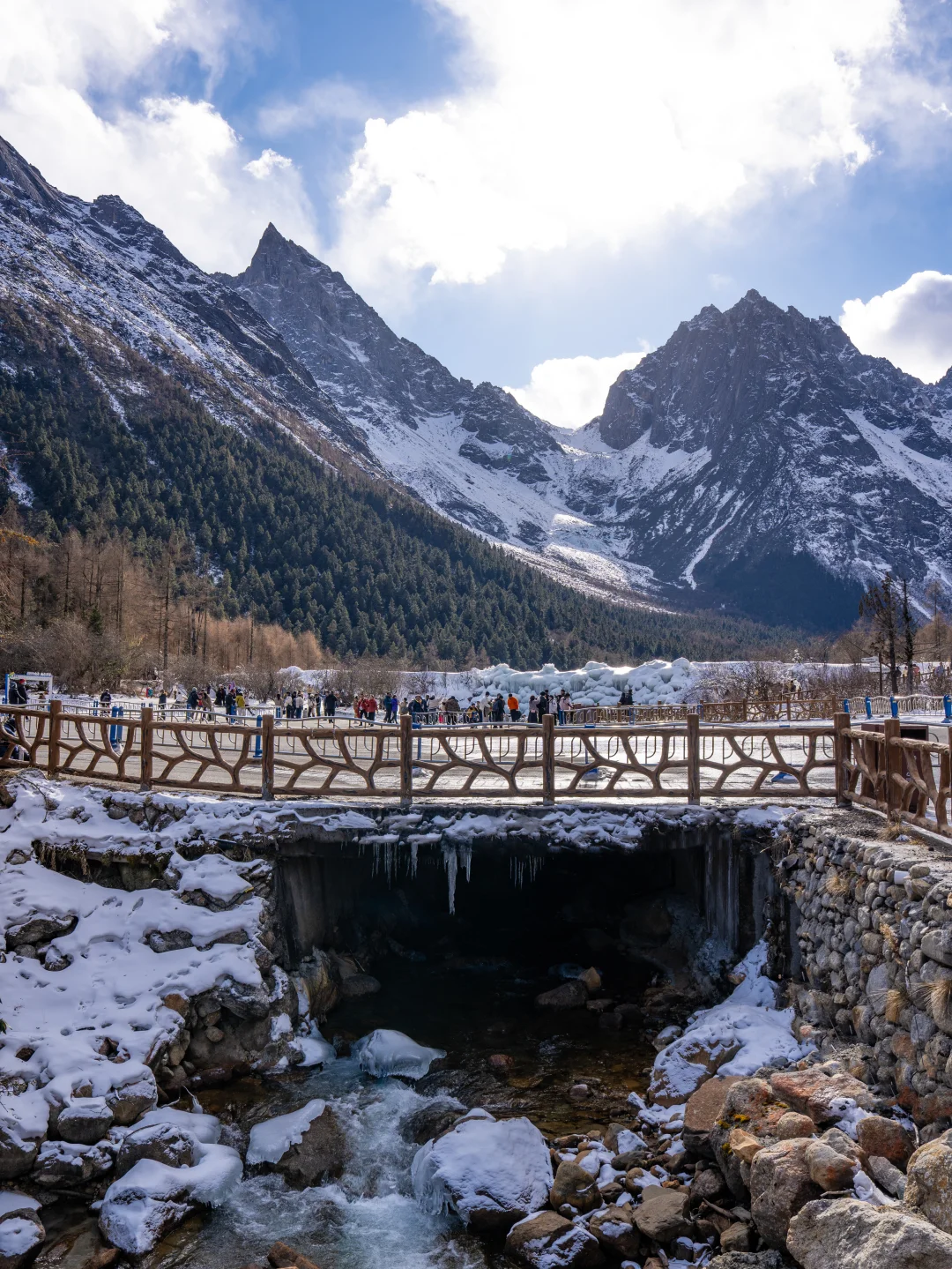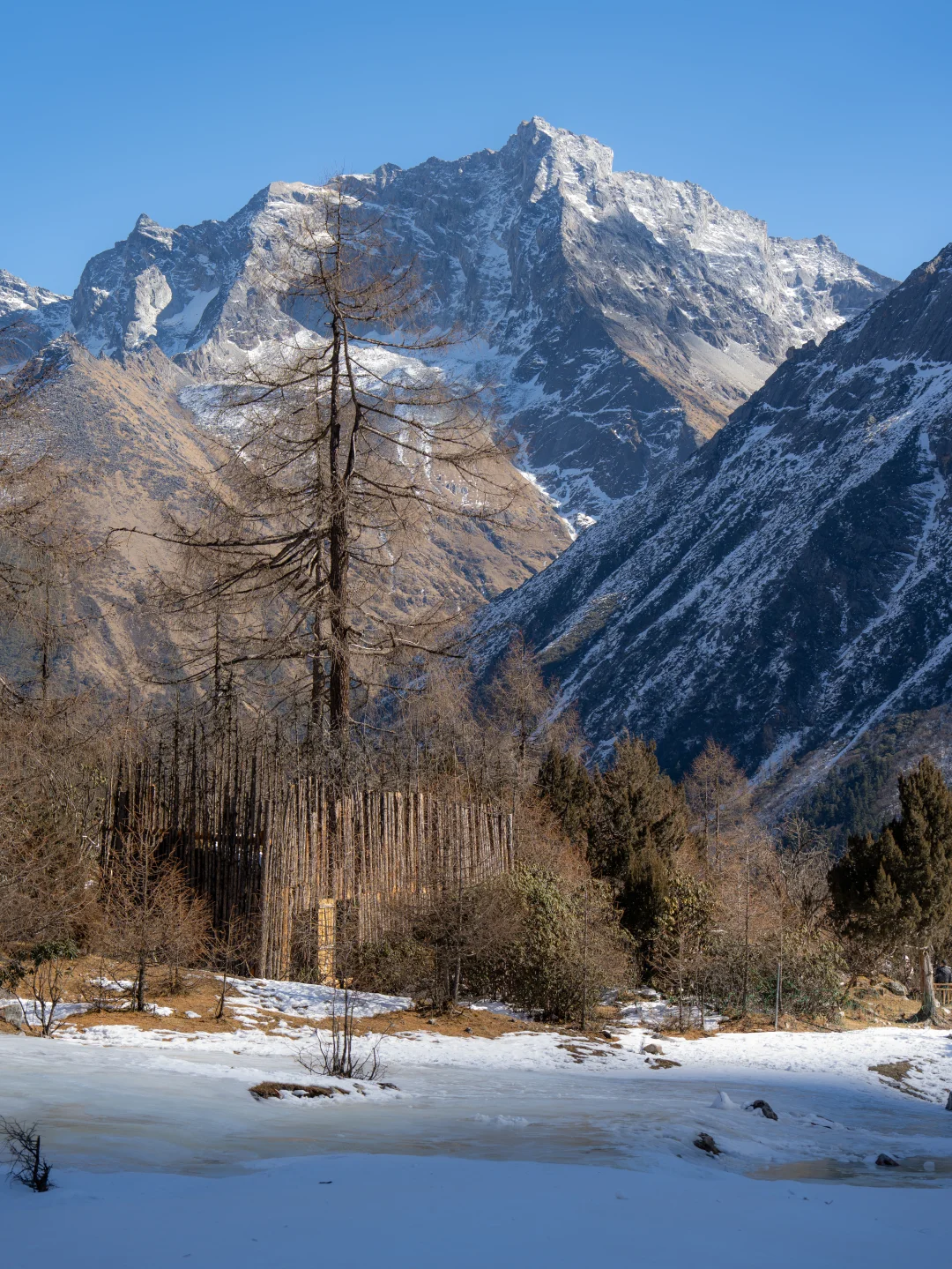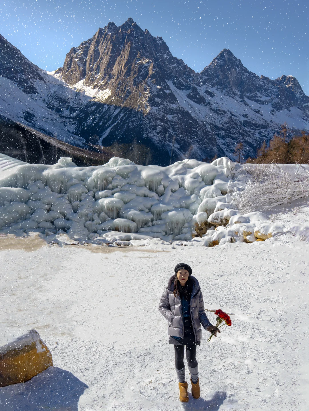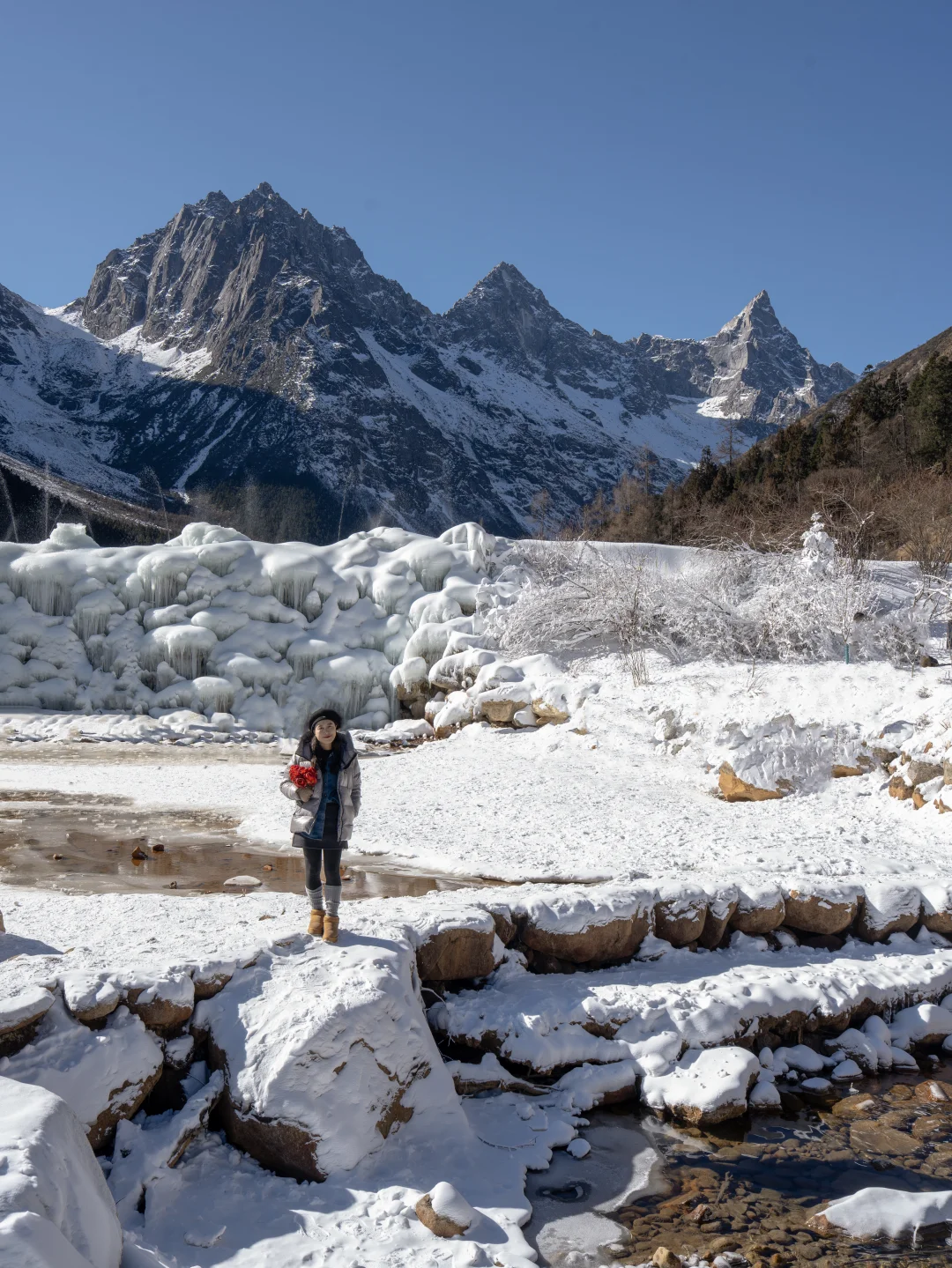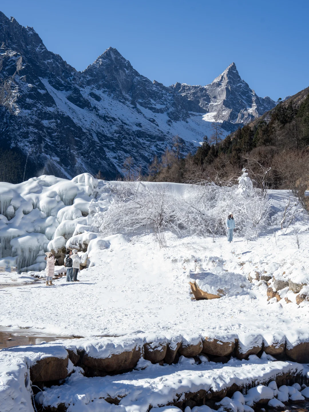以为秋天的川西已经很美了 直到我来到了川西的冬天❄️ 才明白什么是冰封的仙境~ 晨光中,雾凇凝结成一片仙境 风过时簌簌轻落似星光一般 整片山谷有雪山,蓝天为伴 置身其中像极了童话里的世界一般~ .