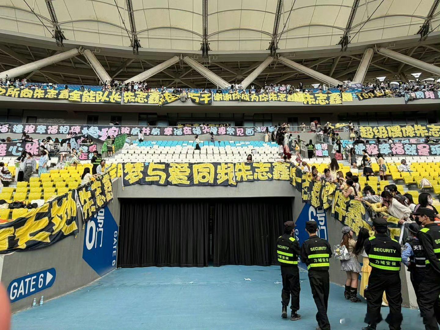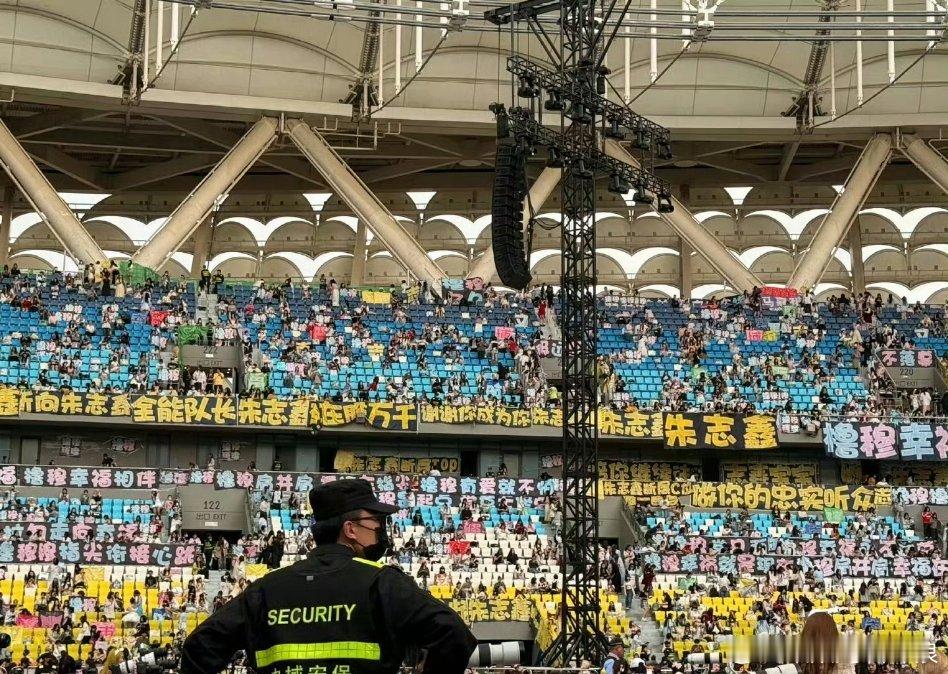 TF家族新音第三天,朱志鑫黄色长灯牌率先领跑,这灯牌是真长啊。朱志鑫场内灯牌朱