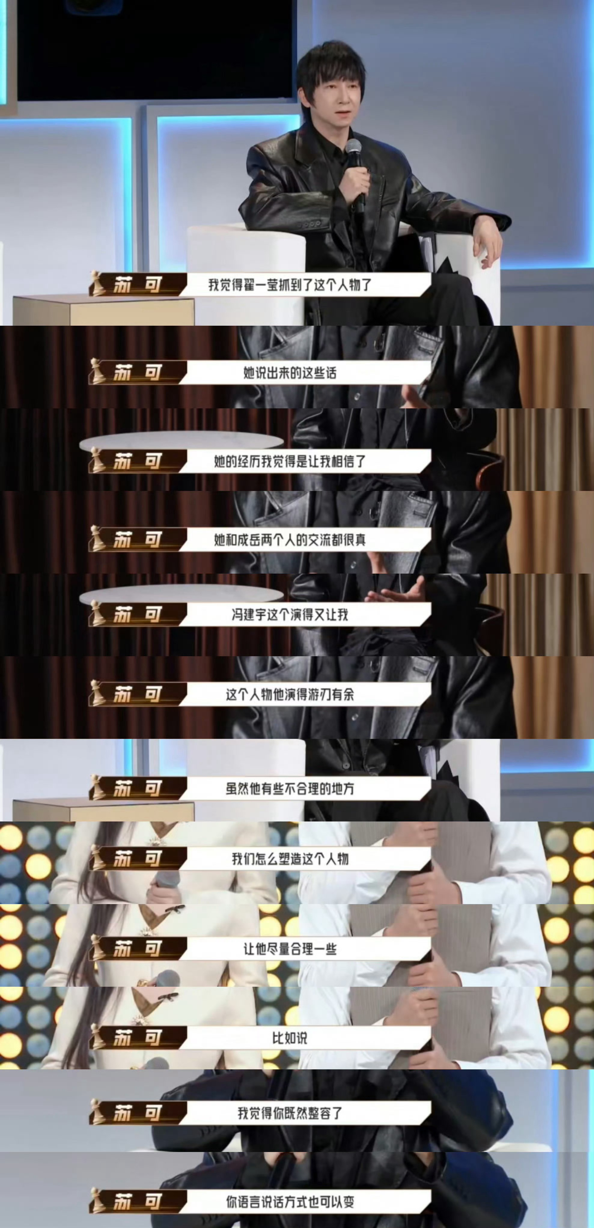 内娱看看苏可这段8分钟内的发言 真正的好指导,不是含糊的夸奖,而是精准的点拨。苏可在演综里示范了什么是有效的评价:问题直指核心,认可也具体到位,这种清晰的专业反馈,才是年轻演员最需要的成长养分。