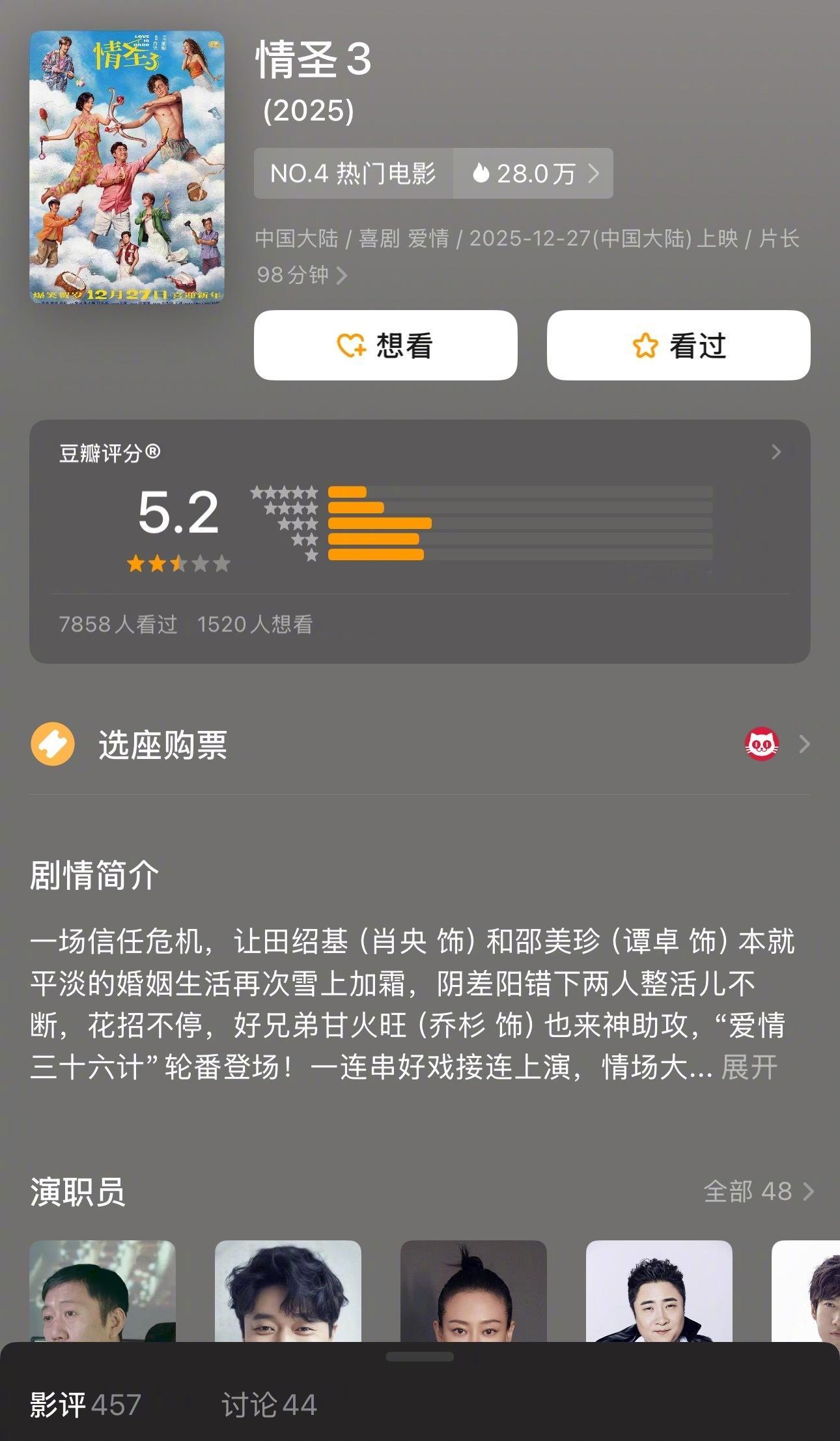 情圣3豆瓣评分5.2。。。。这么低的吗